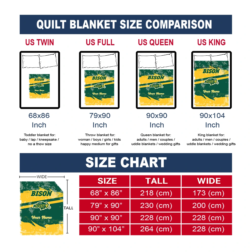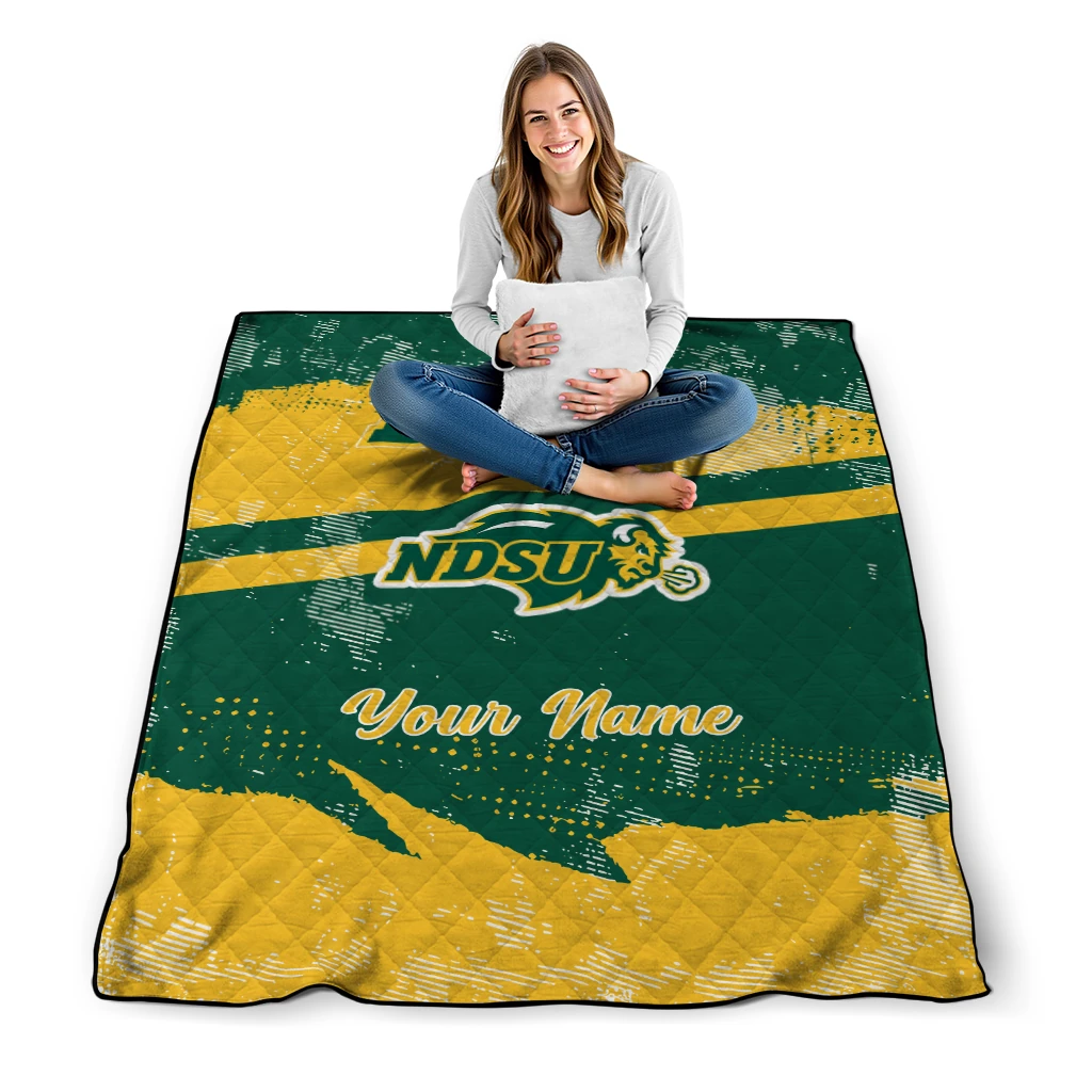 Wrap yourself in warmth and pride with the Customized North Dakota State Bison Brushstroke Layers Green Quilt Blanket from the North Dakota State Bison Blankets collection at Yes That Blanket. Made from 100% premium quilting-weight polyester blended with a touch of microfiber, this quilt offers a smooth, soft finish you’ll love. Choose between two quilting styles—Stipple or Diagonal—and enjoy the comfort of a cotton-filled layer inside that adds extra coziness for every season. The border is available in classic black or white, giving your design a clean, timeless edge.