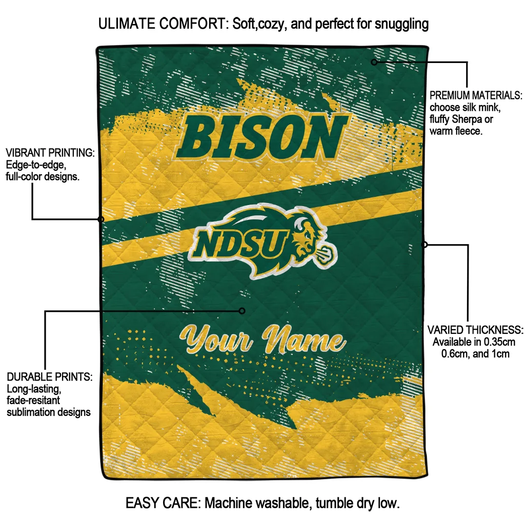 Customized North Dakota State Bison Brushstroke Layers Green Quilt Blanket