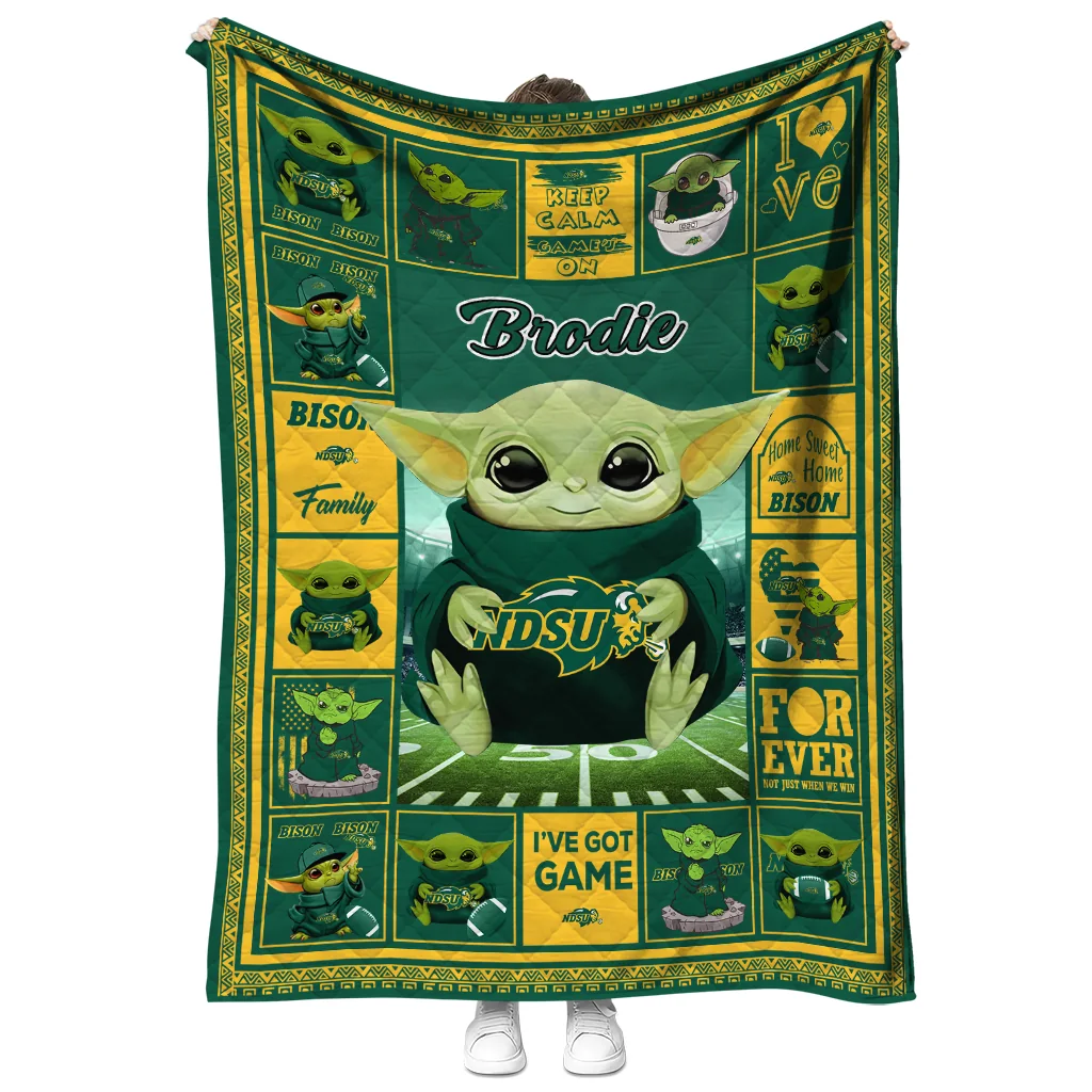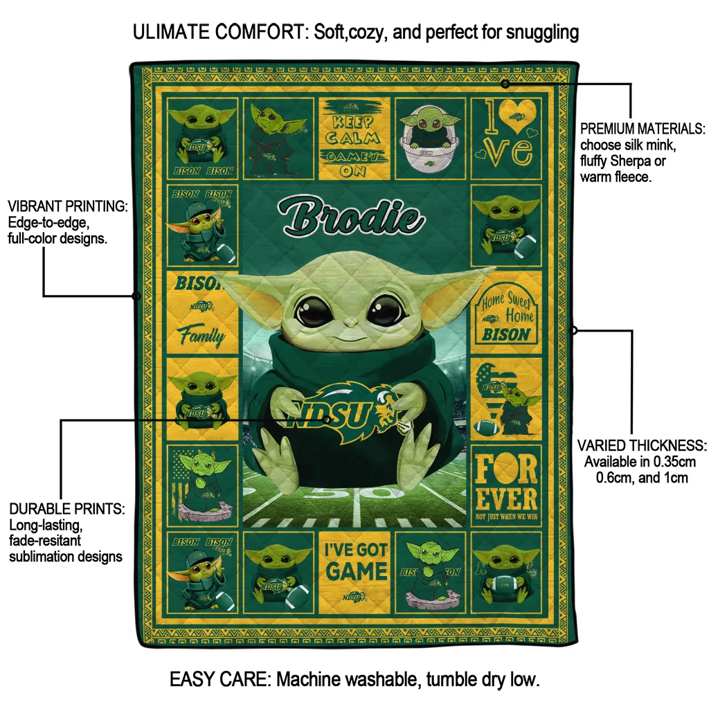 Wrap yourself in warmth and pride with the Customized North Dakota State Bison Yody Baby Pattern Green Quilt Blanket from the North Dakota State Bison Blankets collection at Yes That Blanket. Made from 100% premium quilting-weight polyester blended with a touch of microfiber, this quilt offers a smooth, soft finish you’ll love. Choose between two quilting styles—Stipple or Diagonal—and enjoy the comfort of a cotton-filled layer inside that adds extra coziness for every season. The border is available in classic black or white, giving your design a clean, timeless edge.