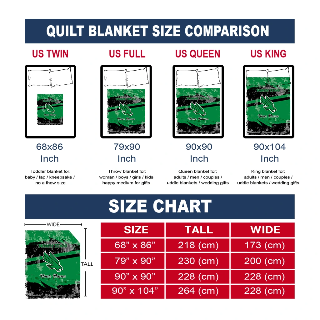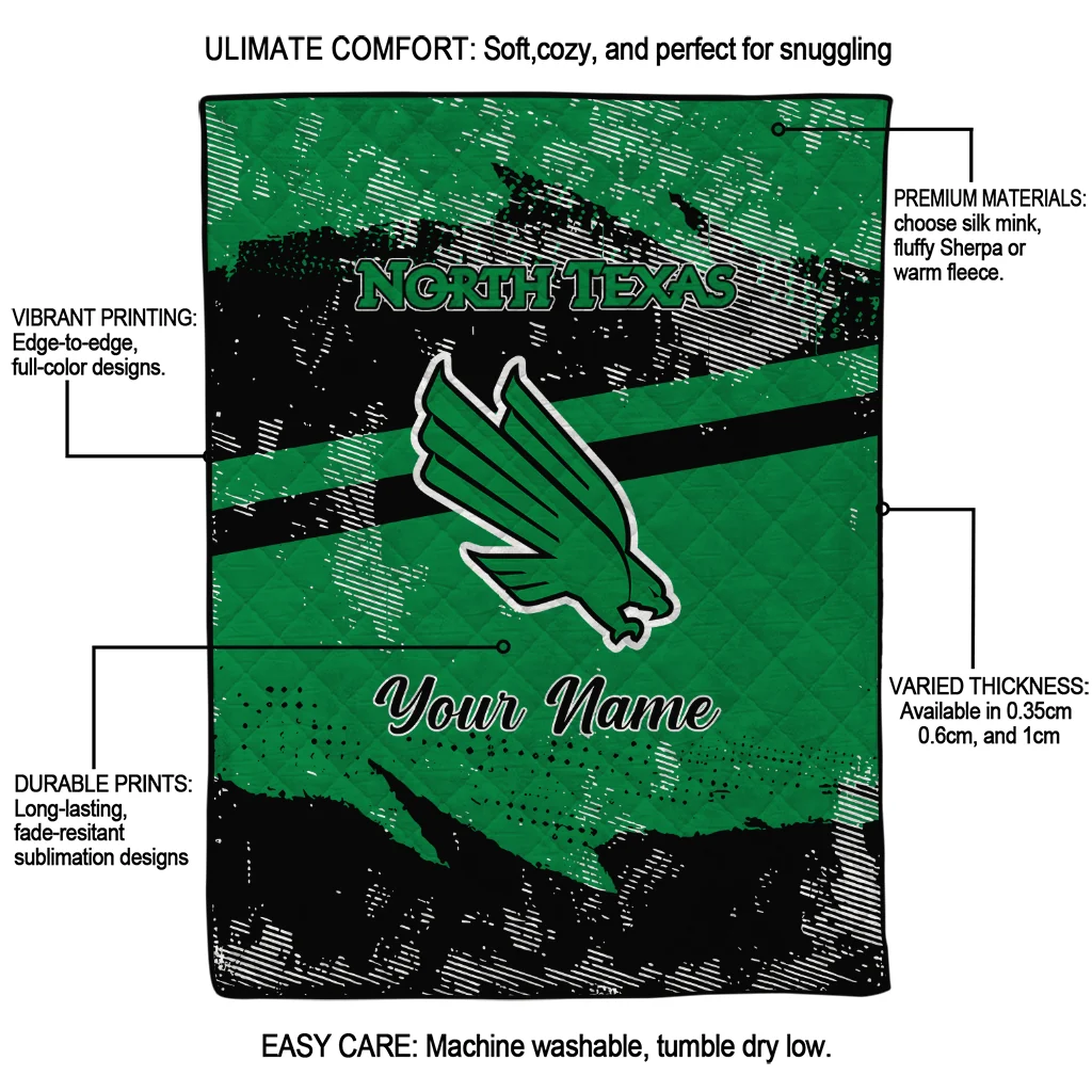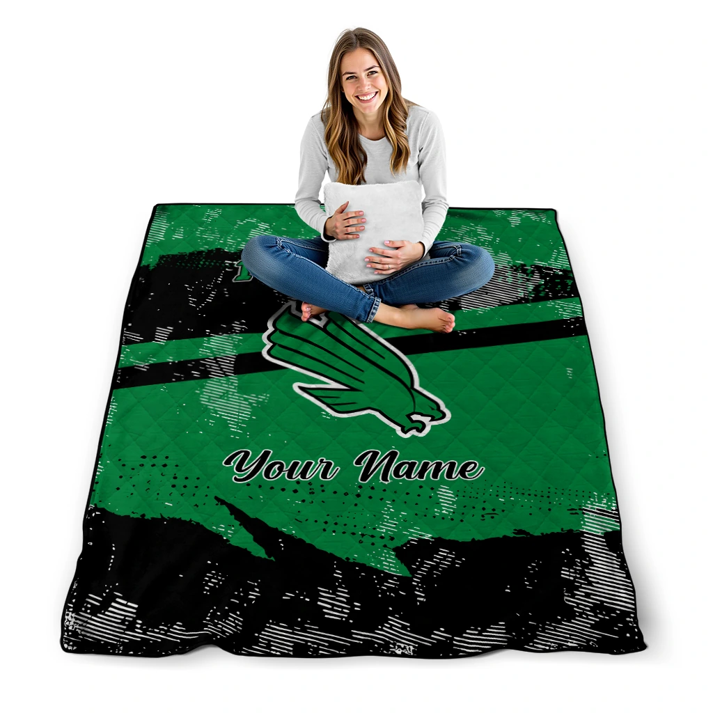 Wrap yourself in warmth and pride with the Customized North Texas Mean Green Brushstroke Layers Green Quilt Blanket from the North Texas Mean Green Blankets collection at Yes That Blanket. Made from 100% premium quilting-weight polyester blended with a touch of microfiber, this quilt offers a smooth, soft finish you’ll love. Choose between two quilting styles—Stipple or Diagonal—and enjoy the comfort of a cotton-filled layer inside that adds extra coziness for every season. The border is available in classic black or white, giving your design a clean, timeless edge.