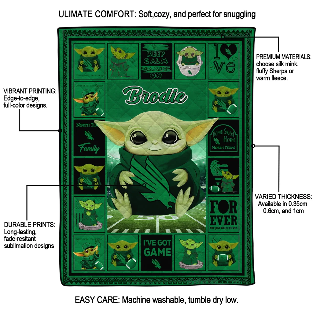 Customized North Texas Mean Green Yody Baby Pattern Green Quilt Blanket