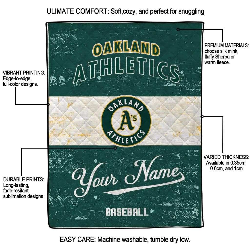 The Customized Oakland Athletics Snoopy Victory Green White Quilt Blanket is more than a blanket—it’s everyday comfort, thoughtfully made. Crafted from premium quilting fabric with a soft microfiber touch, it offers a smooth hand-feel and lasting coziness. Layered quilting with a cotton-filled core provides adaptable warmth across seasons while maintaining a clean, tailored look on your bed or sofa.