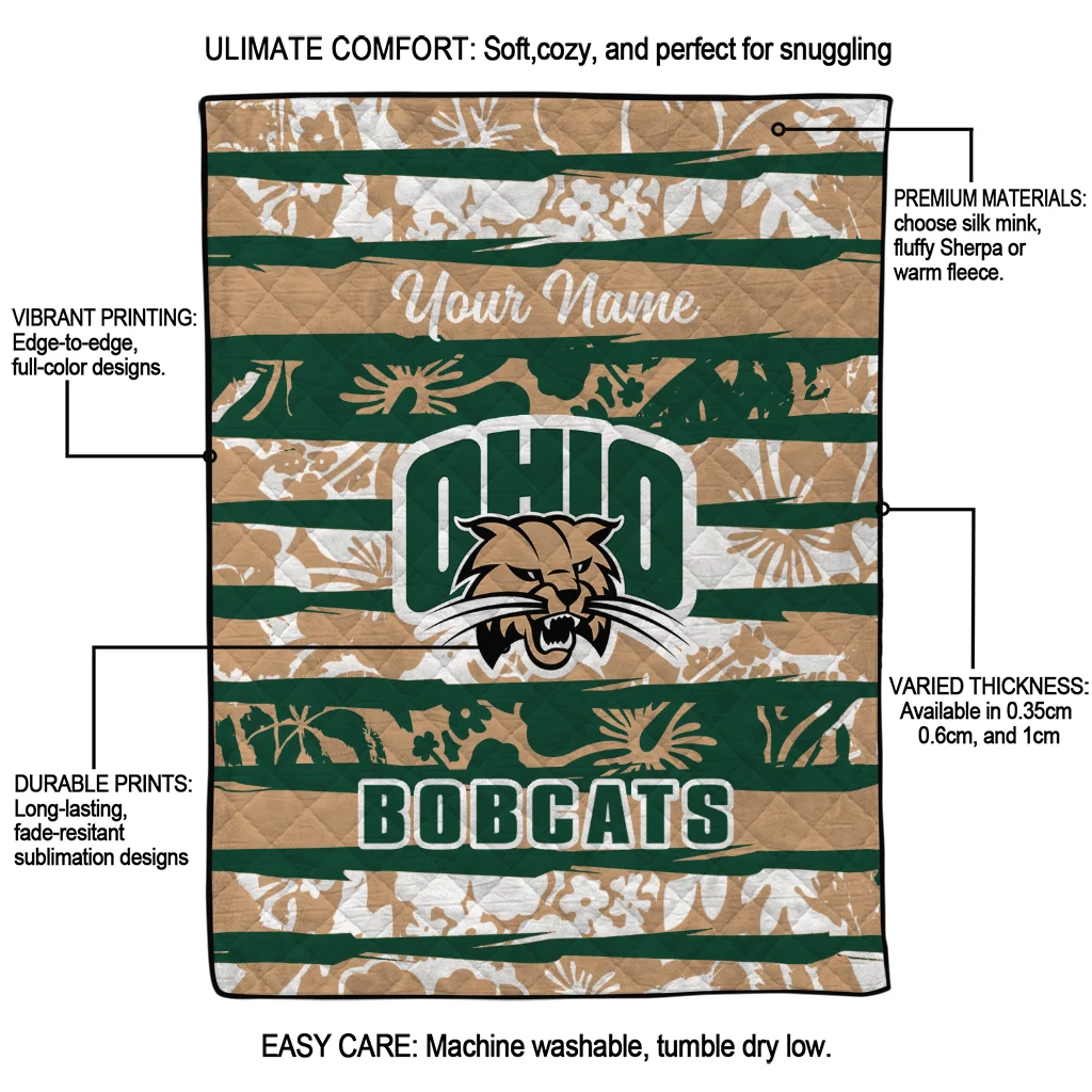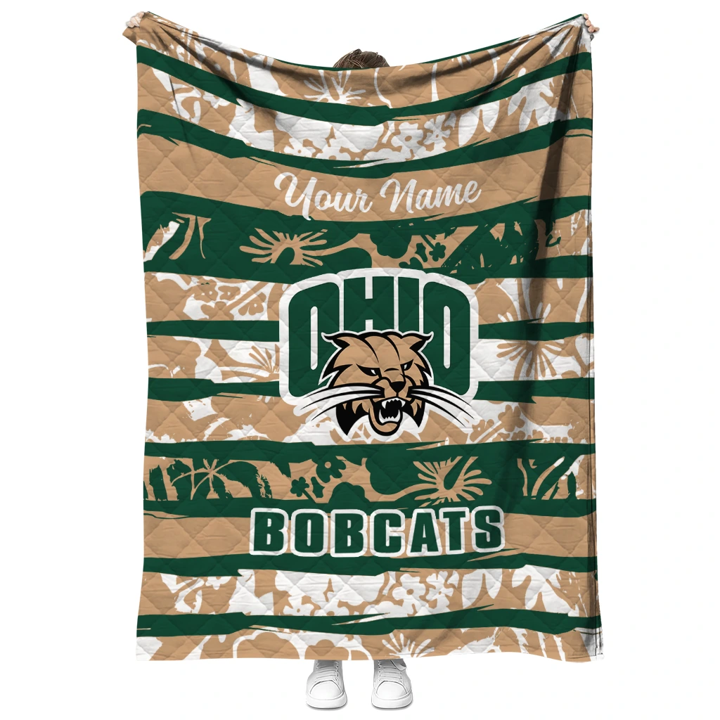 Wrap yourself in warmth and pride with the Customized Ohio Bobcats Layered Florals Green White Quilt Blanket from the Ohio Bobcats Blankets collection at Yes That Blanket. Made from 100% premium quilting-weight polyester blended with a touch of microfiber, this quilt offers a smooth, soft finish you’ll love. Choose between two quilting styles—Stipple or Diagonal—and enjoy the comfort of a cotton-filled layer inside that adds extra coziness for every season. The border is available in classic black or white, giving your design a clean, timeless edge.