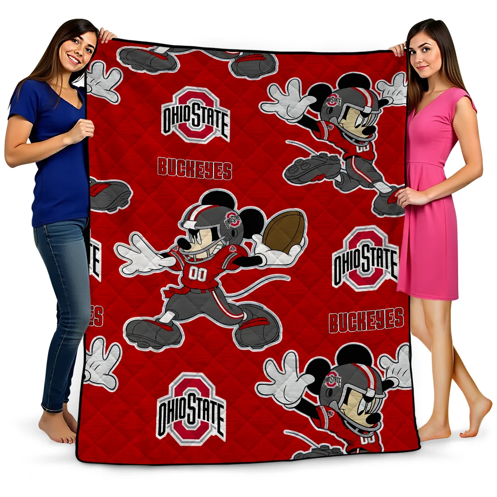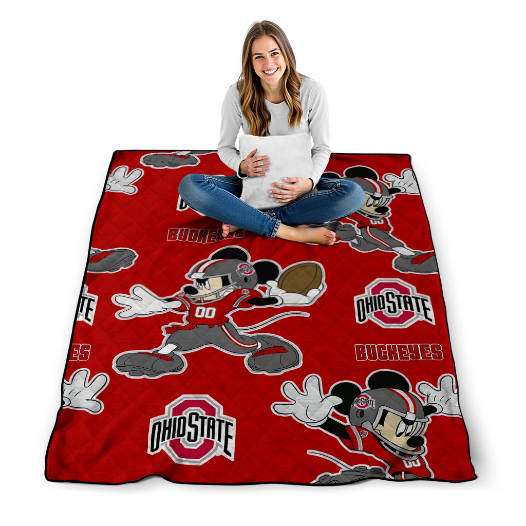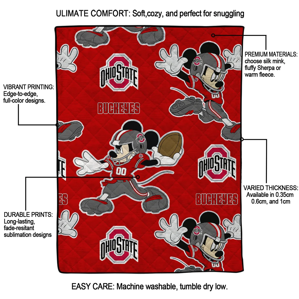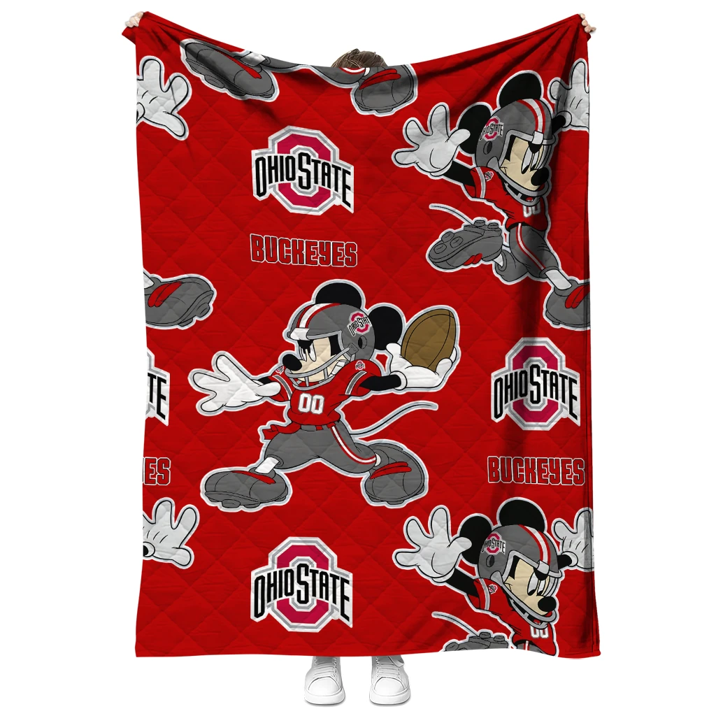 Customized Ohio State Buckeyes Mickey Football Scarlet Quilt Blanket