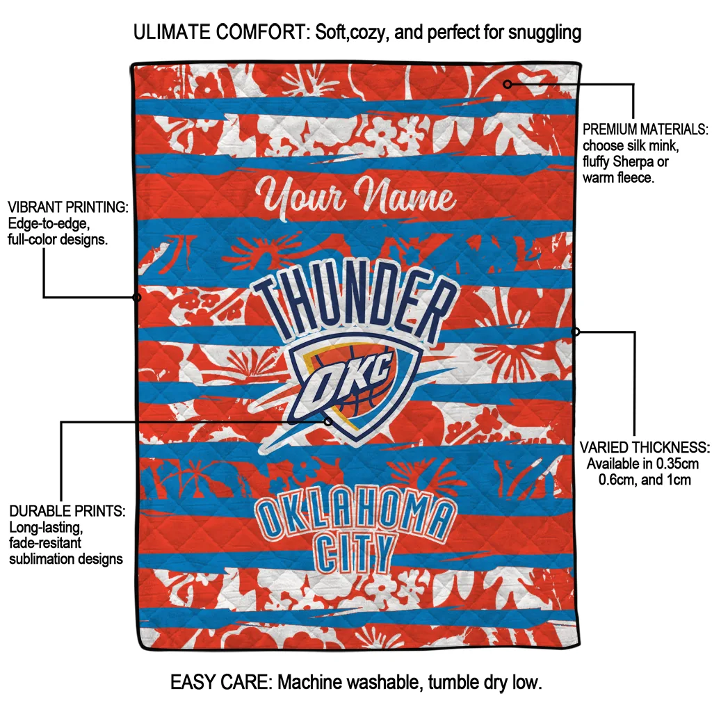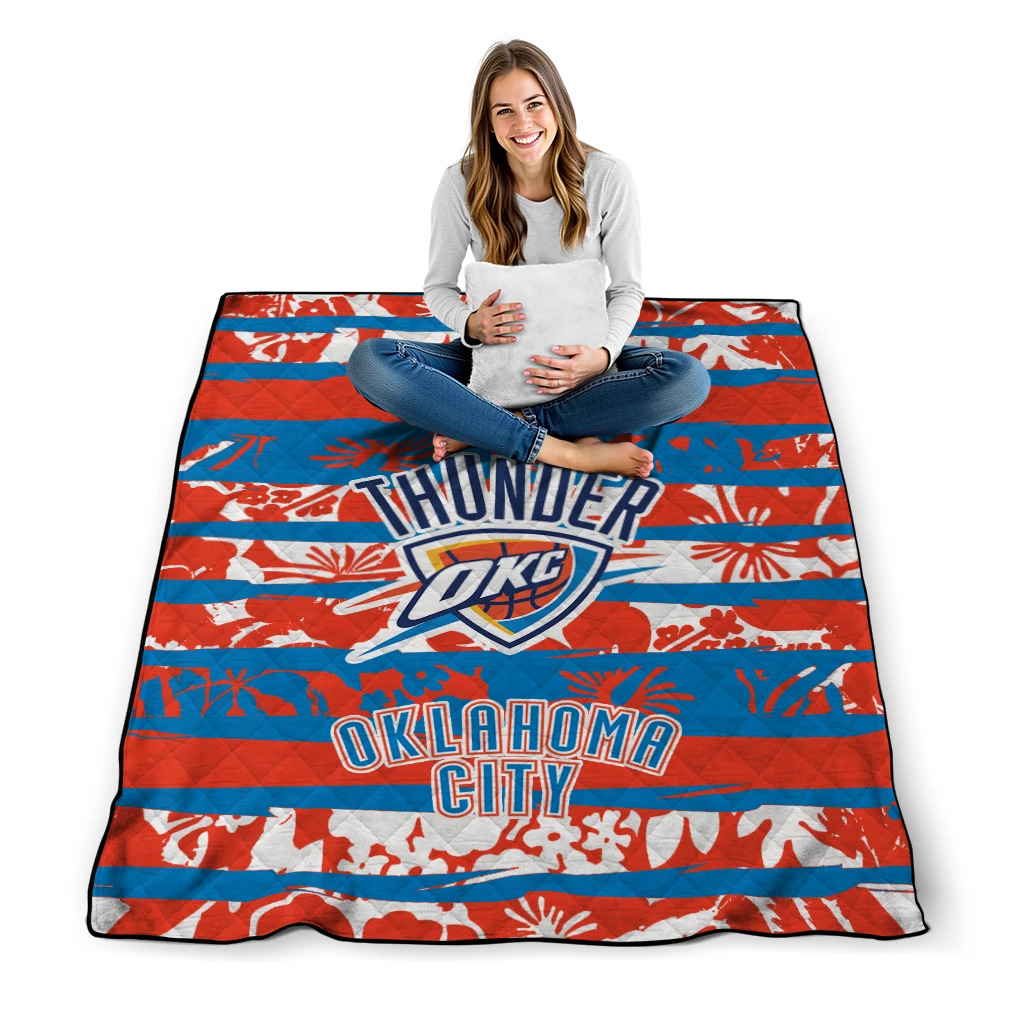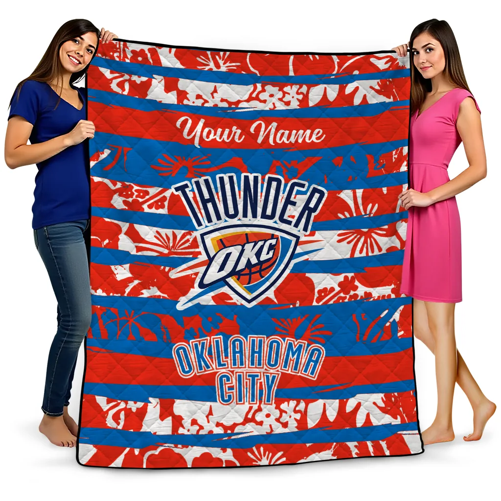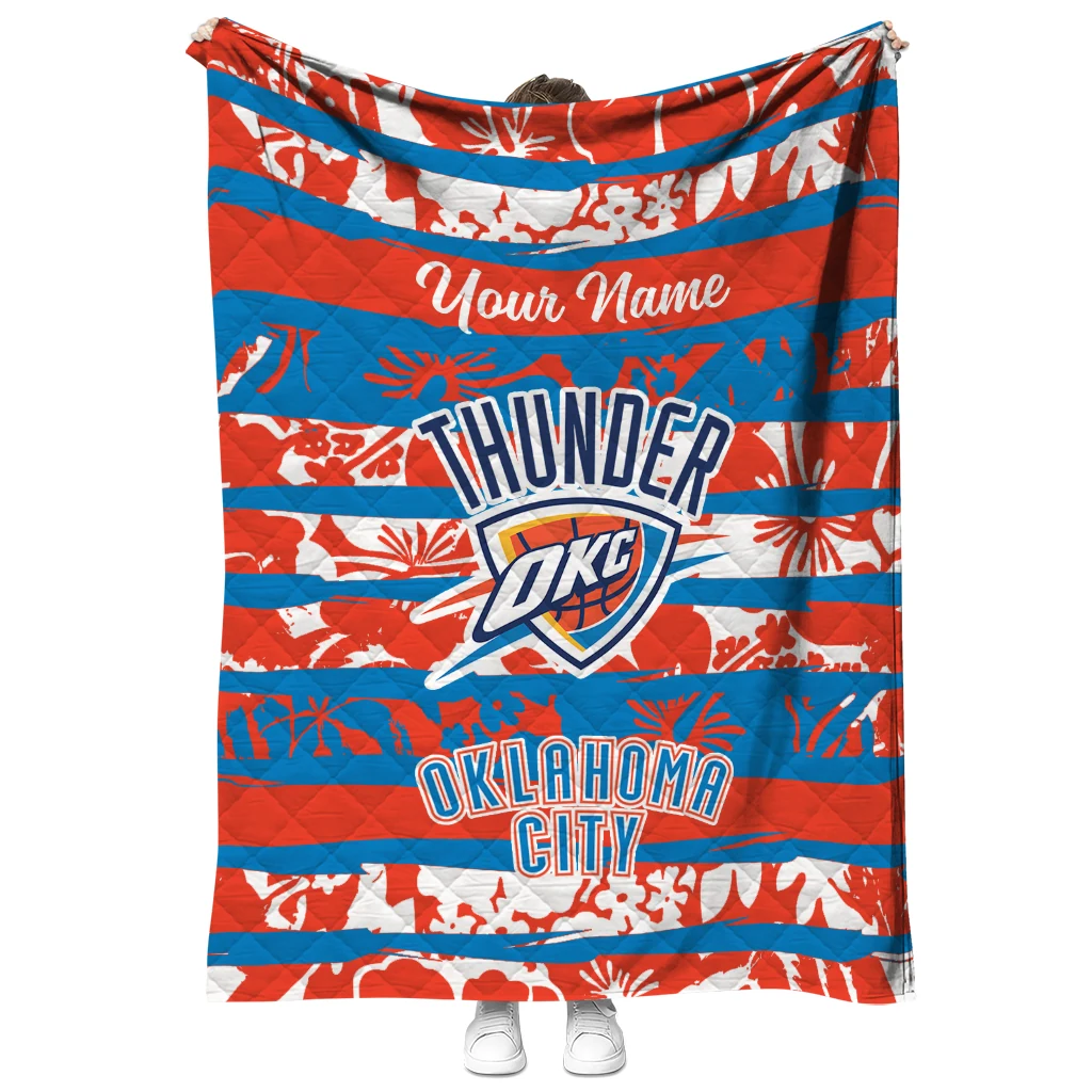 Customized Oklahoma City Thunder Layered Florals Blue White Quilt Blanket
