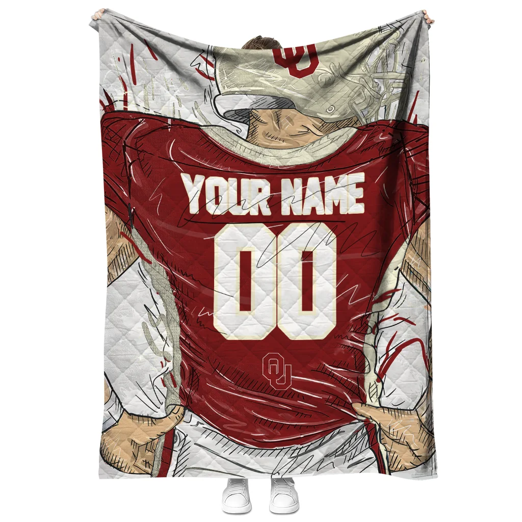 Customized Oklahoma Sooners Player Sketch Crimson Gray Quilt Blanket