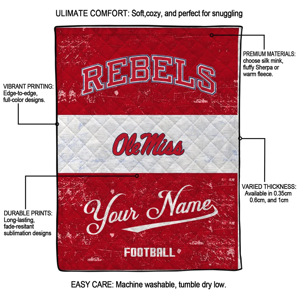 Wrap yourself in warmth and pride with the Customized Ole Miss Rebels Hibiscus Burst Red White Quilt Blanket from the Ole Miss Rebels Blankets collection at Yes That Blanket. Made from 100% premium quilting-weight polyester blended with a touch of microfiber, this quilt offers a smooth, soft finish you’ll love. Choose between two quilting styles—Stipple or Diagonal—and enjoy the comfort of a cotton-filled layer inside that adds extra coziness for every season. The border is available in classic black or white, giving your design a clean, timeless edge.