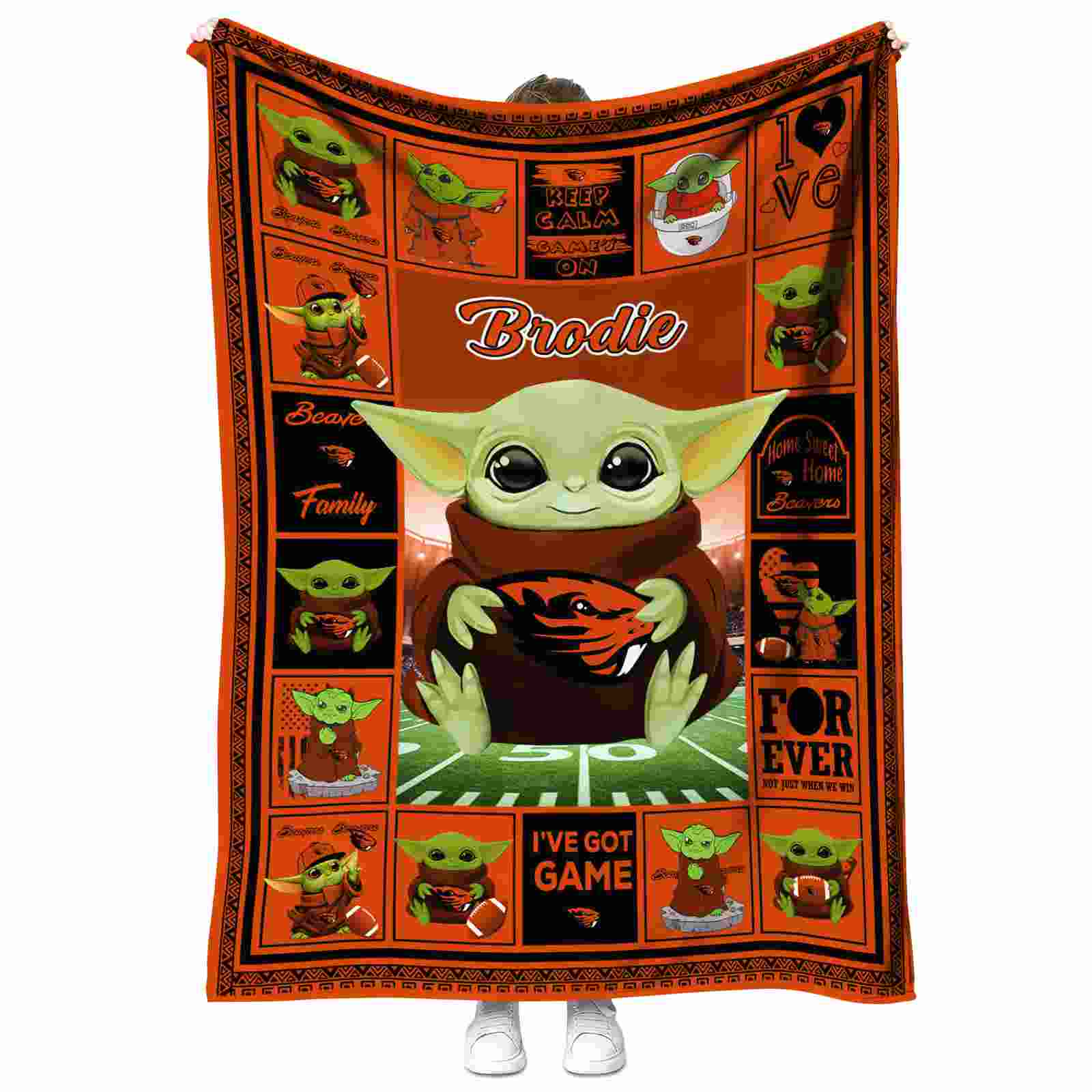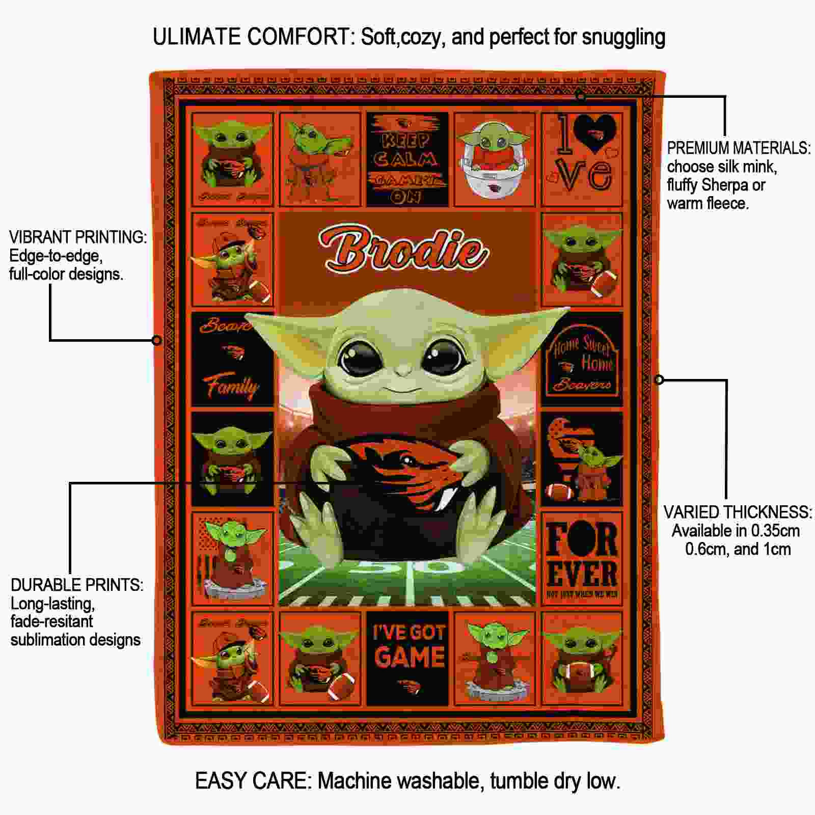 Without a doubt, the Customized Oregon State Beavers Baby Yoda Orange Blanket from Oregon State Beavers Blankets collection is offering true fans a chance to showcase passion in a cool way. Personalize it with your favorite team’s logo or a meaningful name to make it uniquely yours. Isn’t that great? The full-color print ensures vibrant, edge-to-edge designs, bringing your sports enthusiasm to life!