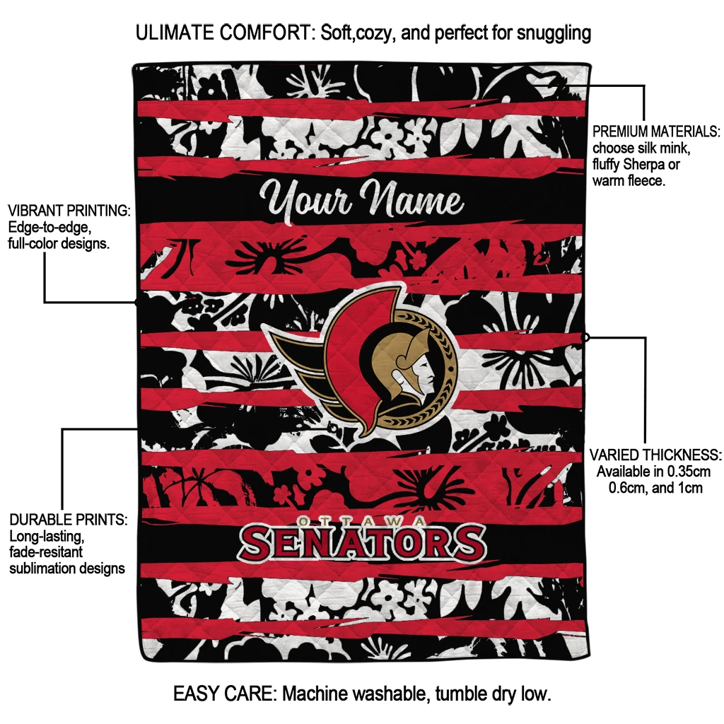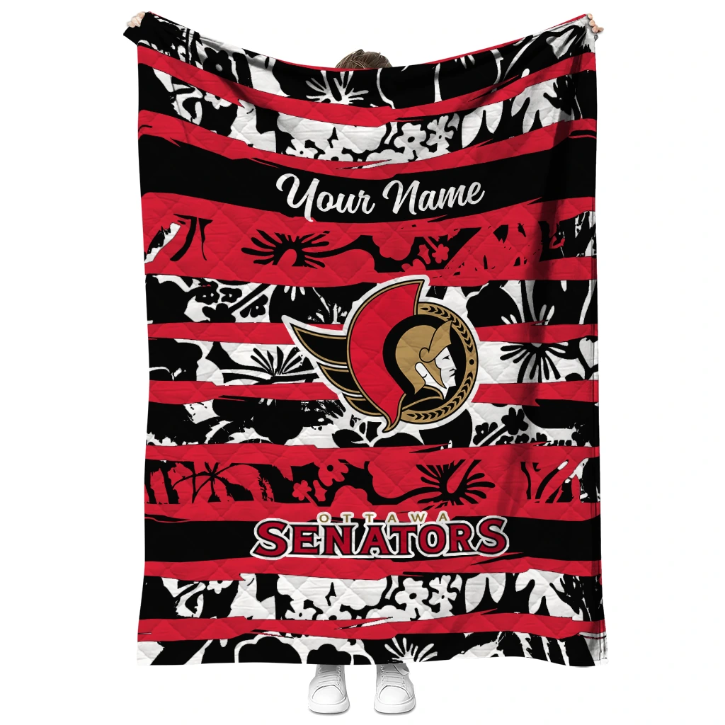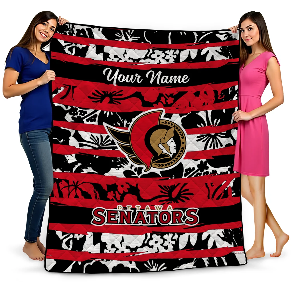 Customized Ottawa Senators Layered Florals Red White Quilt Blanket