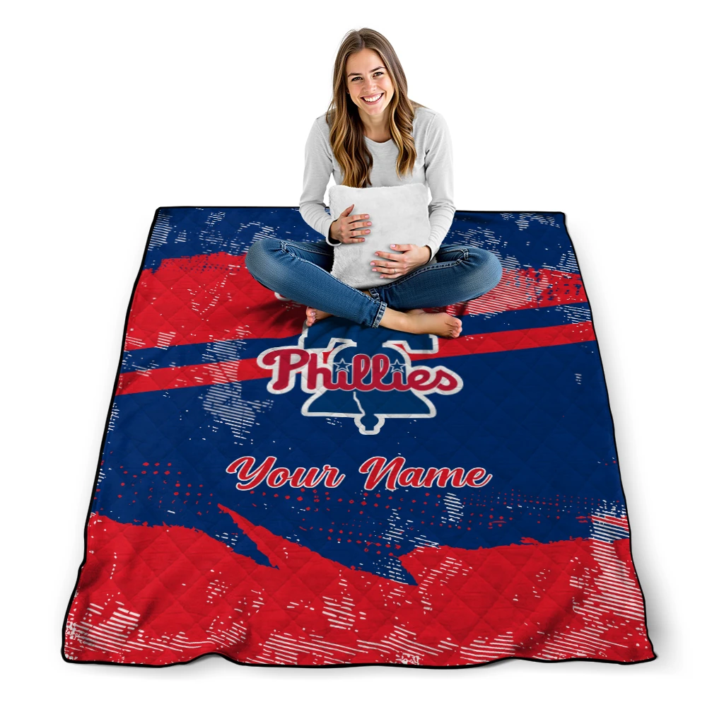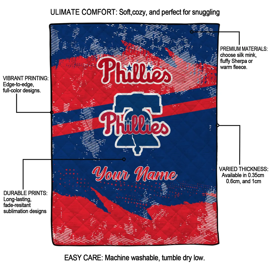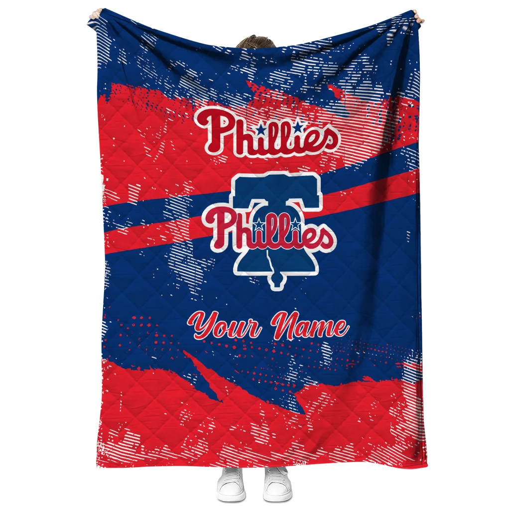 Customized Philadelphia Phillies Brushstroke Layers Blue Quilt Blanket