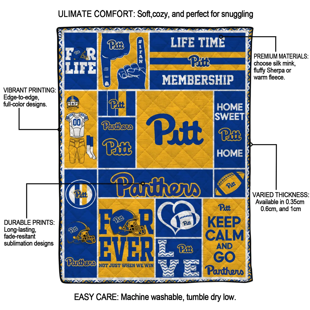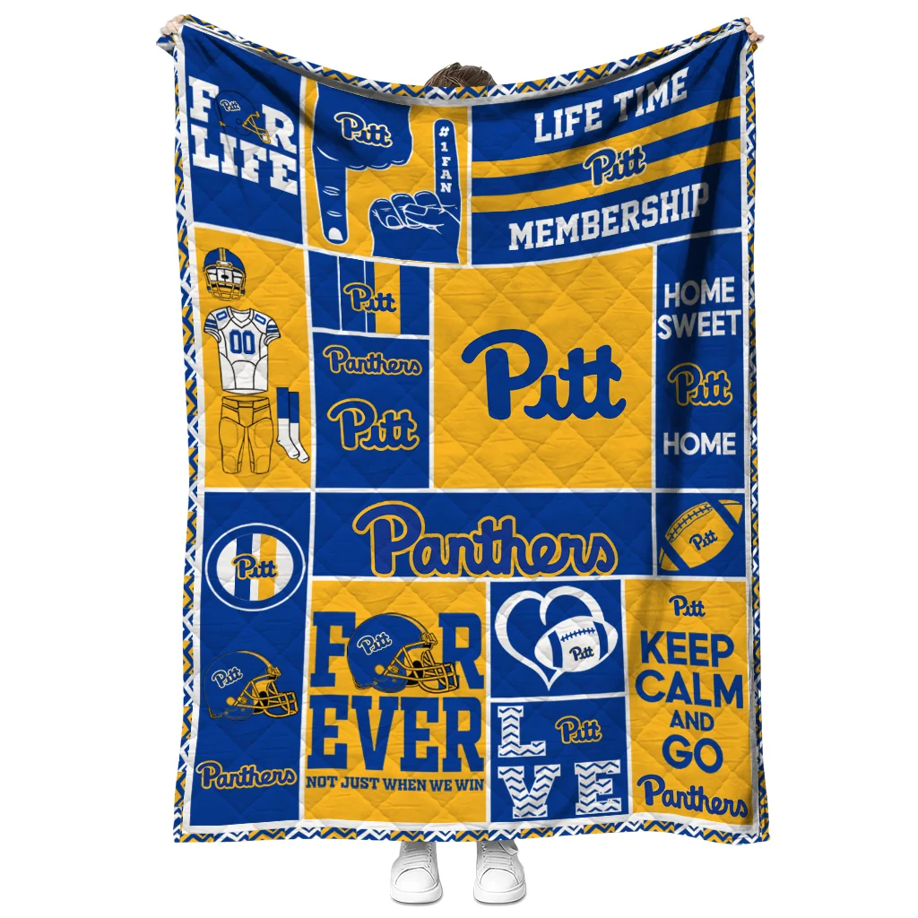 Customized Pittsburgh Panthers Helmet Passion Royal Blue Quilt Blanket