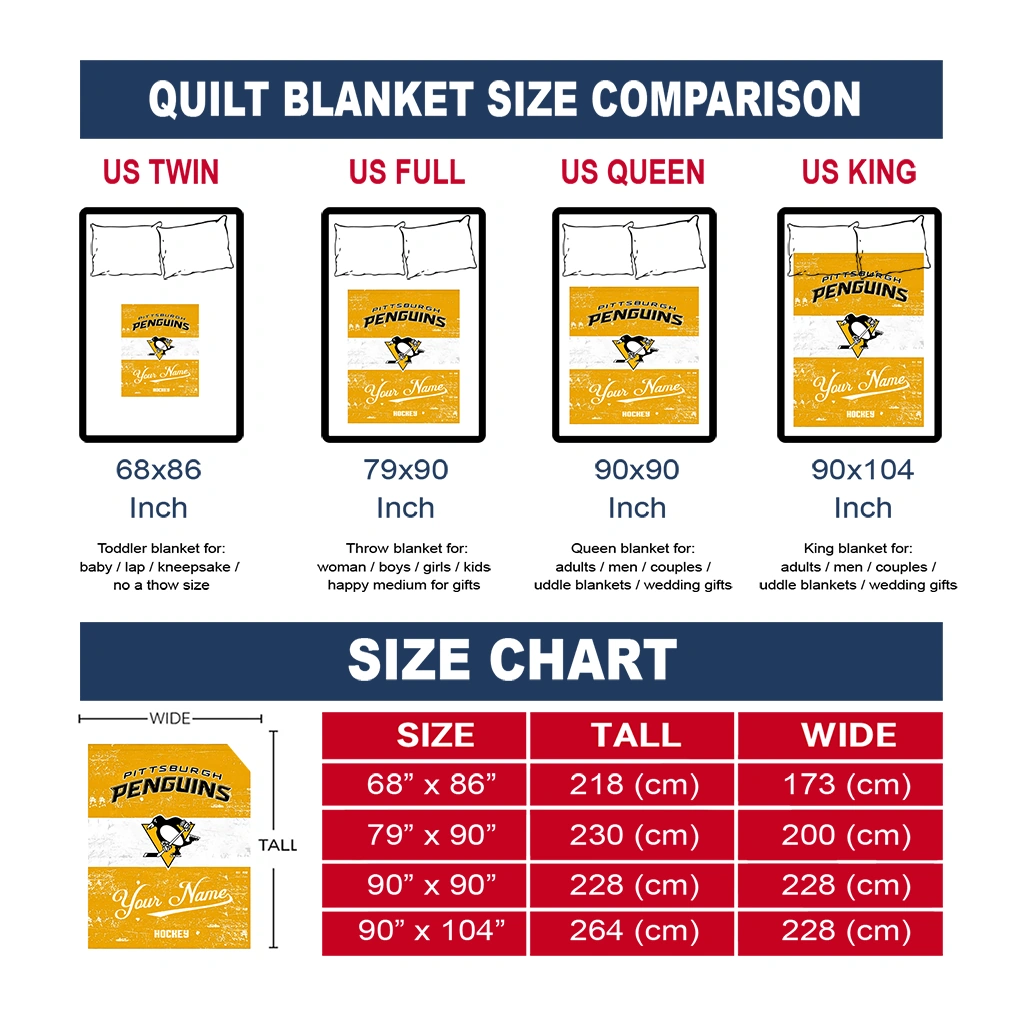 Wrap yourself in warmth and pride with the Customized Pittsburgh Penguins Pinstripe Lines Yellow White Quilt Blanket from the Pittsburgh Penguins Blankets collection at Yes That Blanket. Made from 100% premium quilting-weight polyester blended with a touch of microfiber, this quilt offers a smooth, soft finish you’ll love. Choose between two quilting styles—Stipple or Diagonal—and enjoy the comfort of a cotton-filled layer inside that adds extra coziness for every season. The border is available in classic black or white, giving your design a clean, timeless edge.