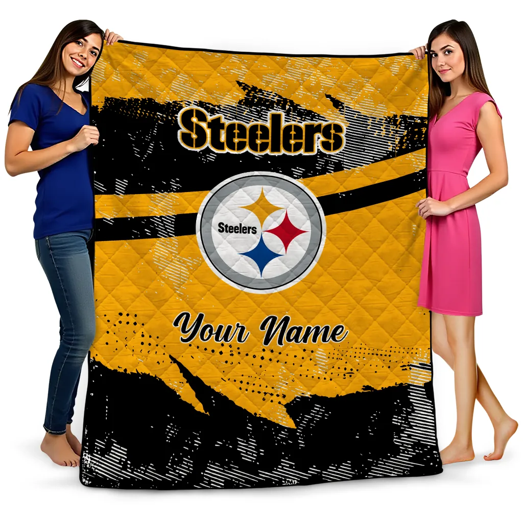 Customized Pittsburgh Steelers Brushstroke Layers Gold Quilt Blanket