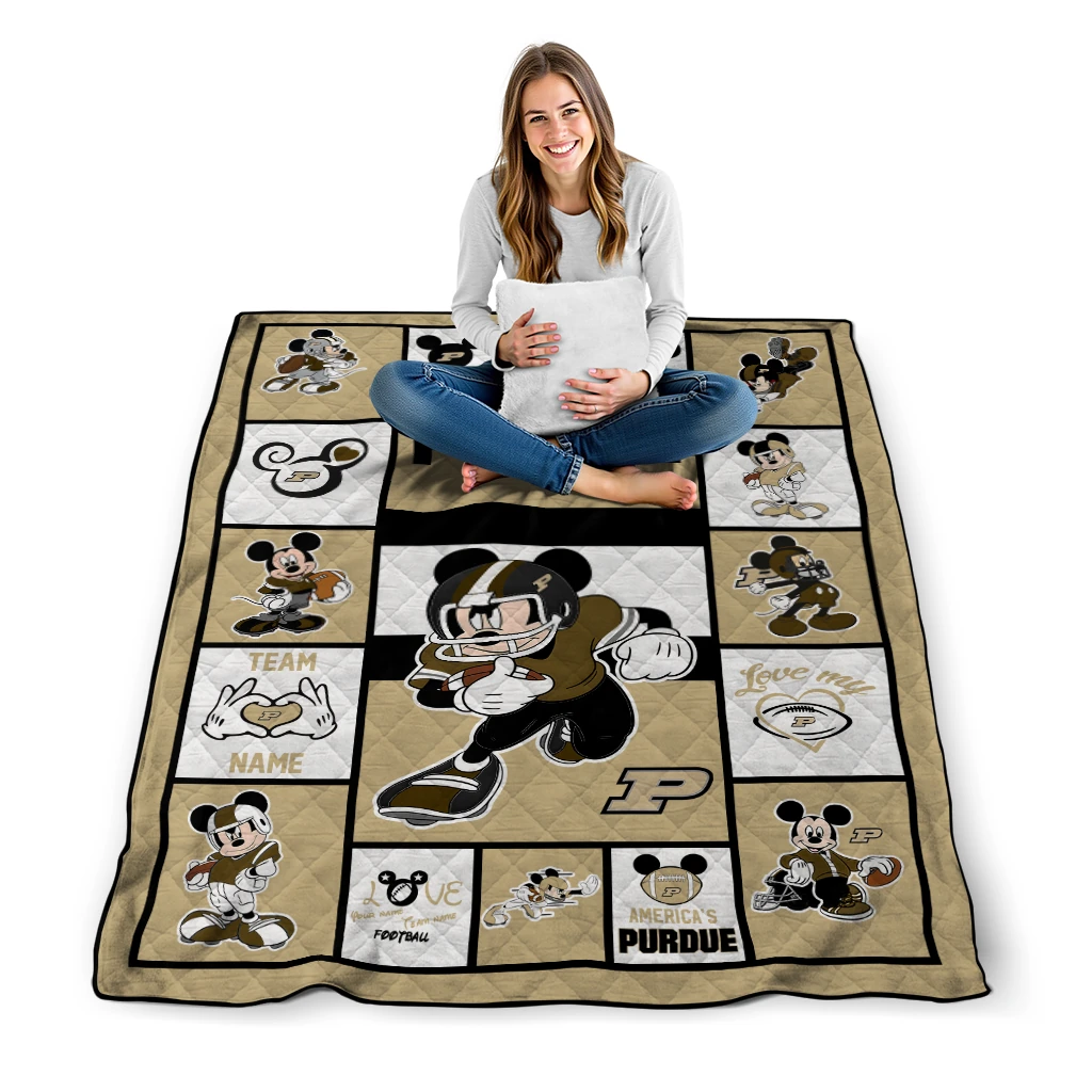 Customized Purdue Boilermakers Mickey Crimson Gold White Quilt Blanket
