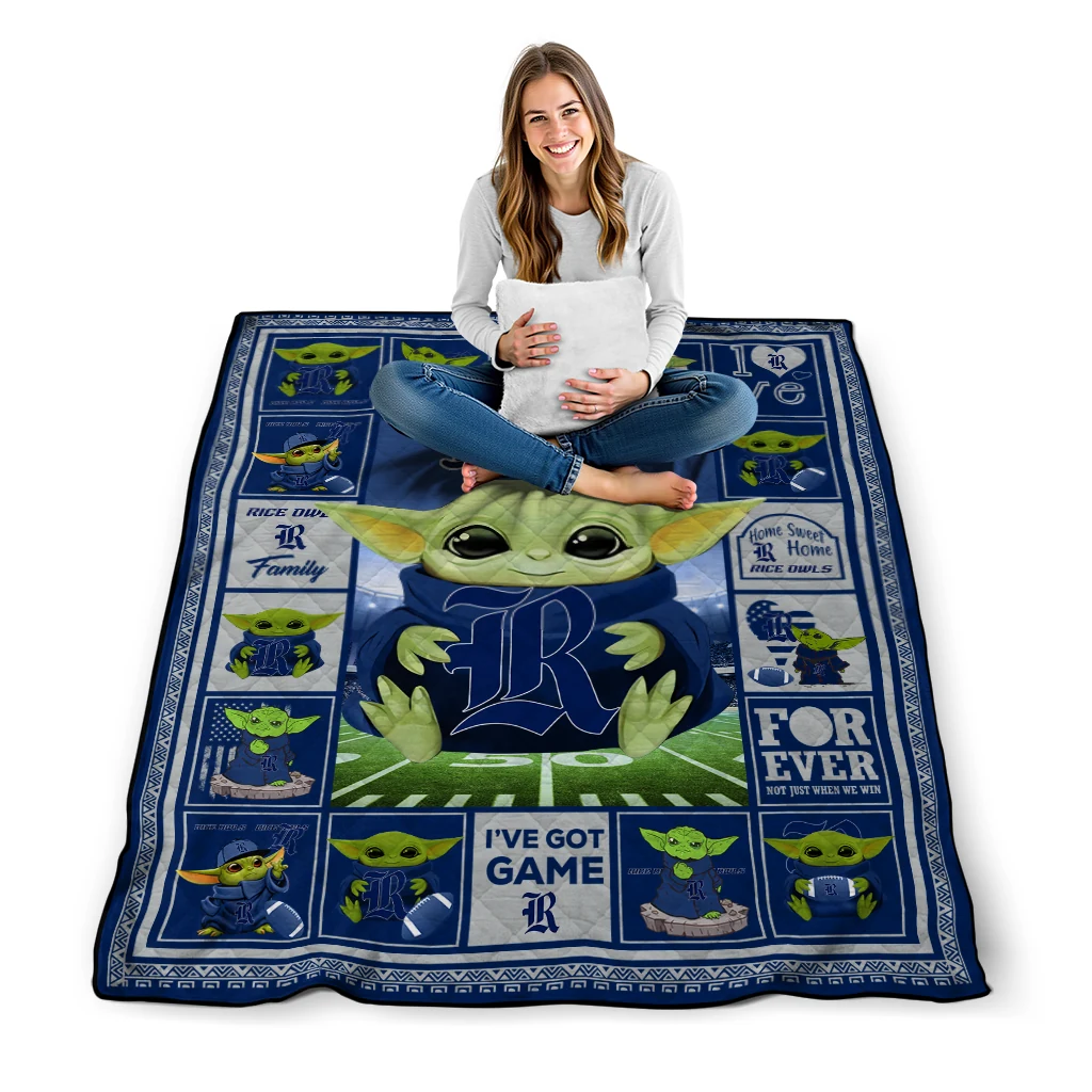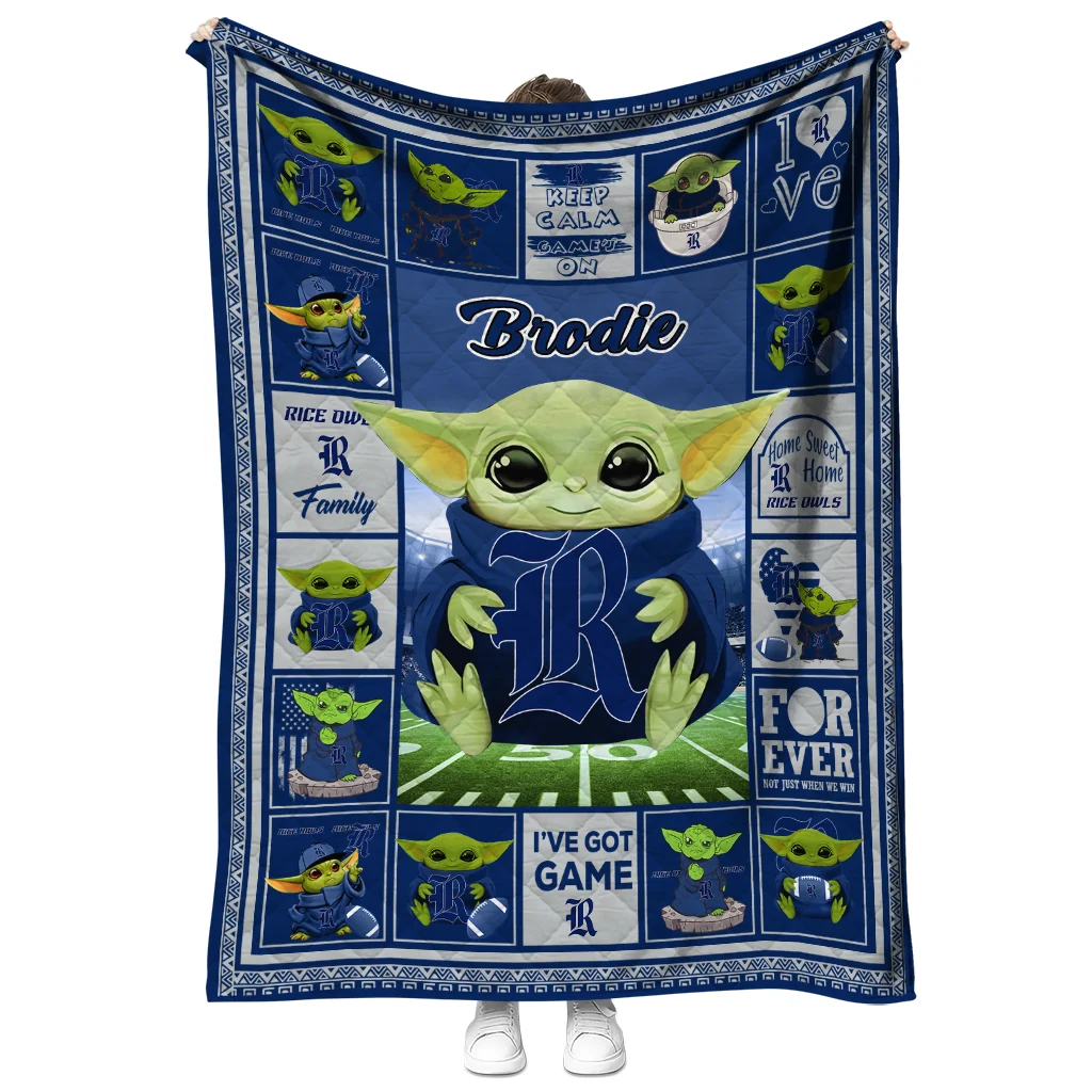 Wrap yourself in warmth and pride with the Customized Rice Owls Yody Baby Pattern Navy Blue Quilt Blanket from the Rice Owls Blankets collection at Yes That Blanket. Made from 100% premium quilting-weight polyester blended with a touch of microfiber, this quilt offers a smooth, soft finish you’ll love. Choose between two quilting styles—Stipple or Diagonal—and enjoy the comfort of a cotton-filled layer inside that adds extra coziness for every season. The border is available in classic black or white, giving your design a clean, timeless edge.
