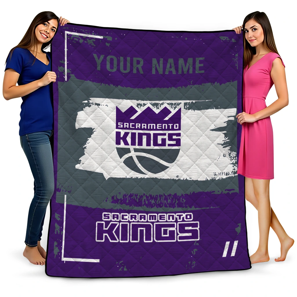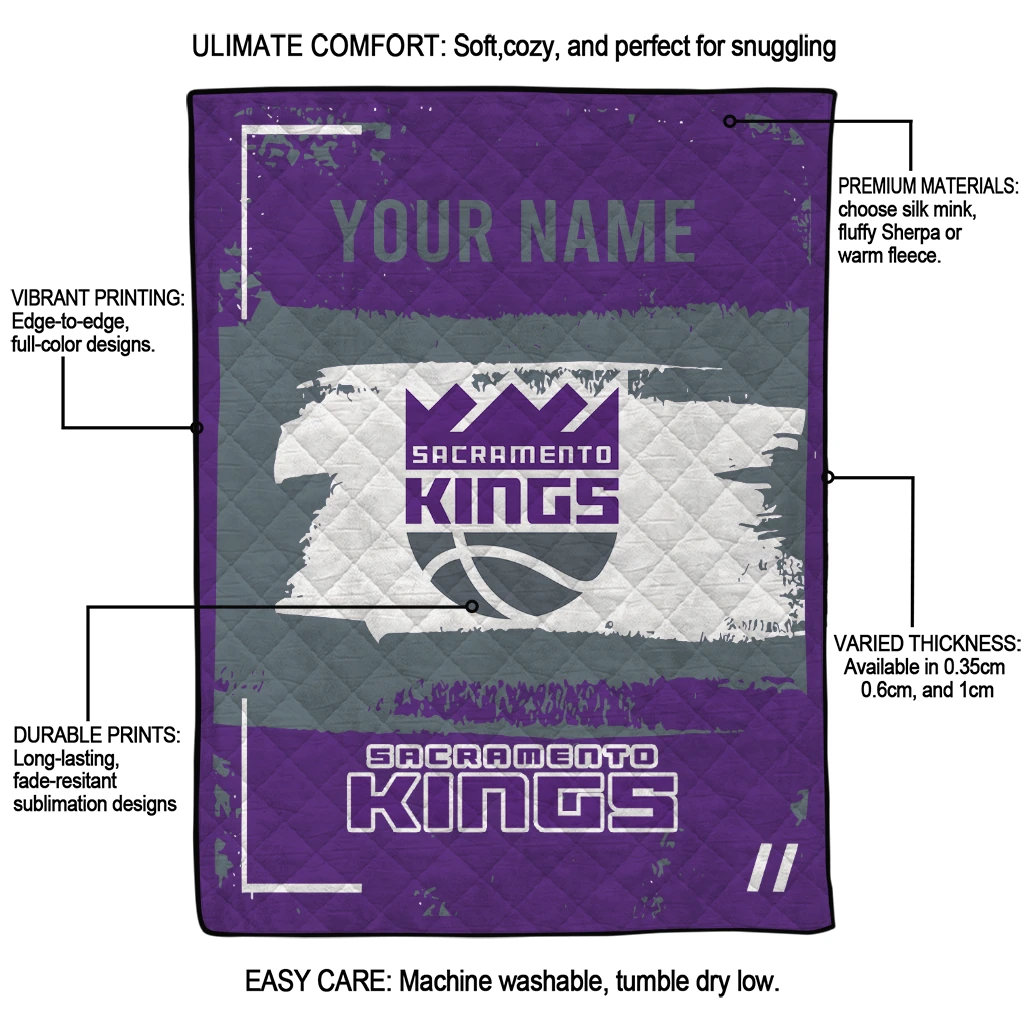 Wrap yourself in warmth and pride with the Customized Sacramento Kings Grunge Patch Purple White Quilt Blanket from the Sacramento Kings Blankets collection at Yes That Blanket. Made from 100% premium quilting-weight polyester blended with a touch of microfiber, this quilt offers a smooth, soft finish you’ll love. Choose between two quilting styles—Stipple or Diagonal—and enjoy the comfort of a cotton-filled layer inside that adds extra coziness for every season. The border is available in classic black or white, giving your design a clean, timeless edge.