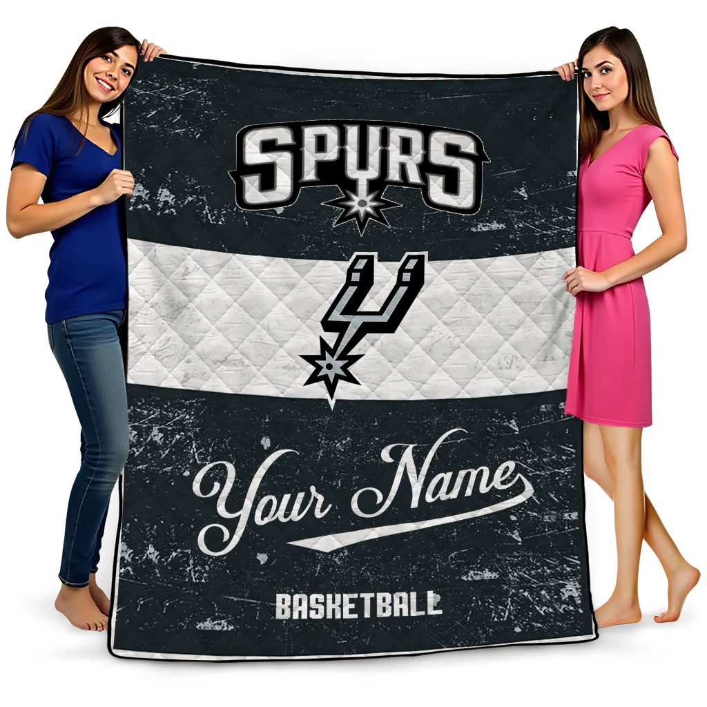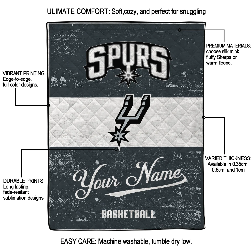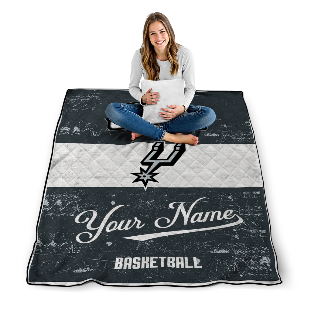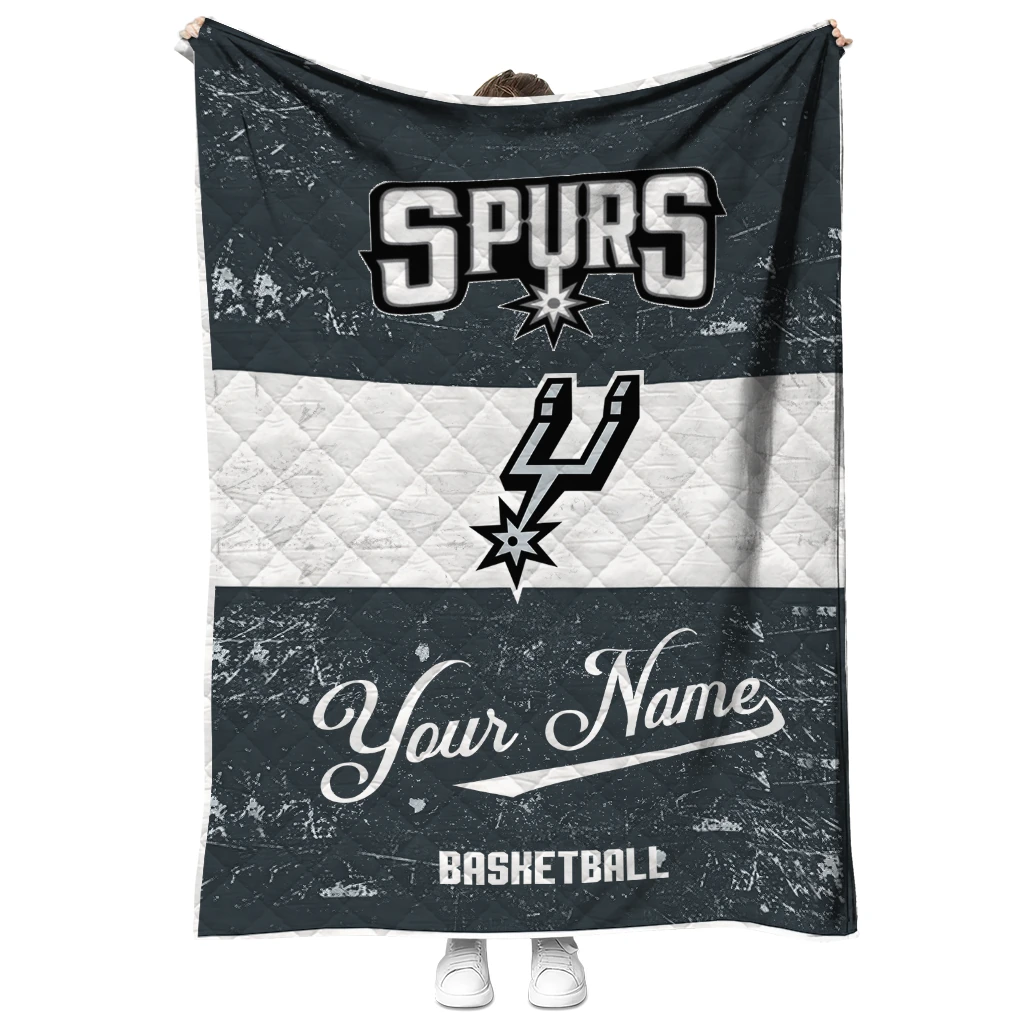 Customized San Antonio Spurs Helmet Fan Silver White Quilt Blanket