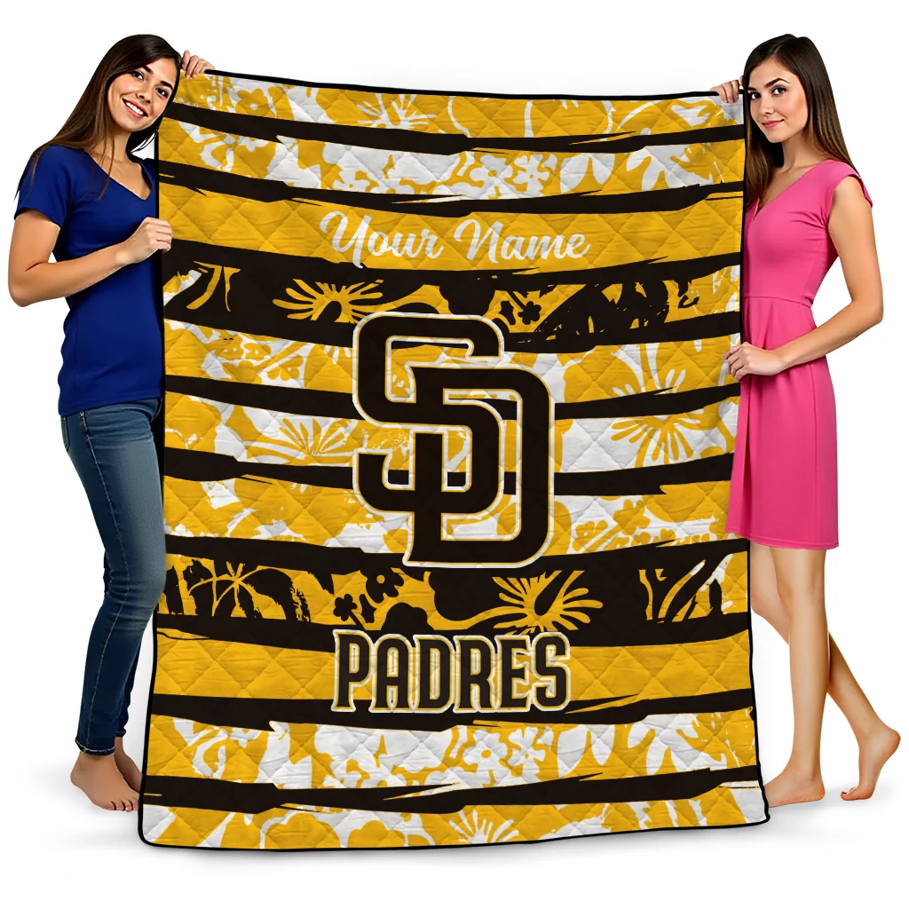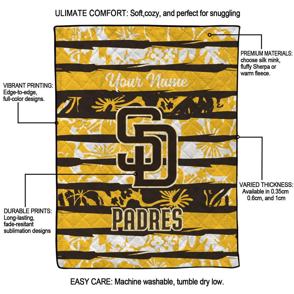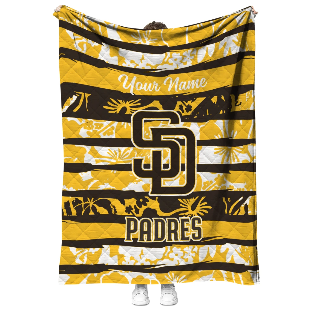 Customized San Diego Padres Layered Florals Brown White Quilt Blanket