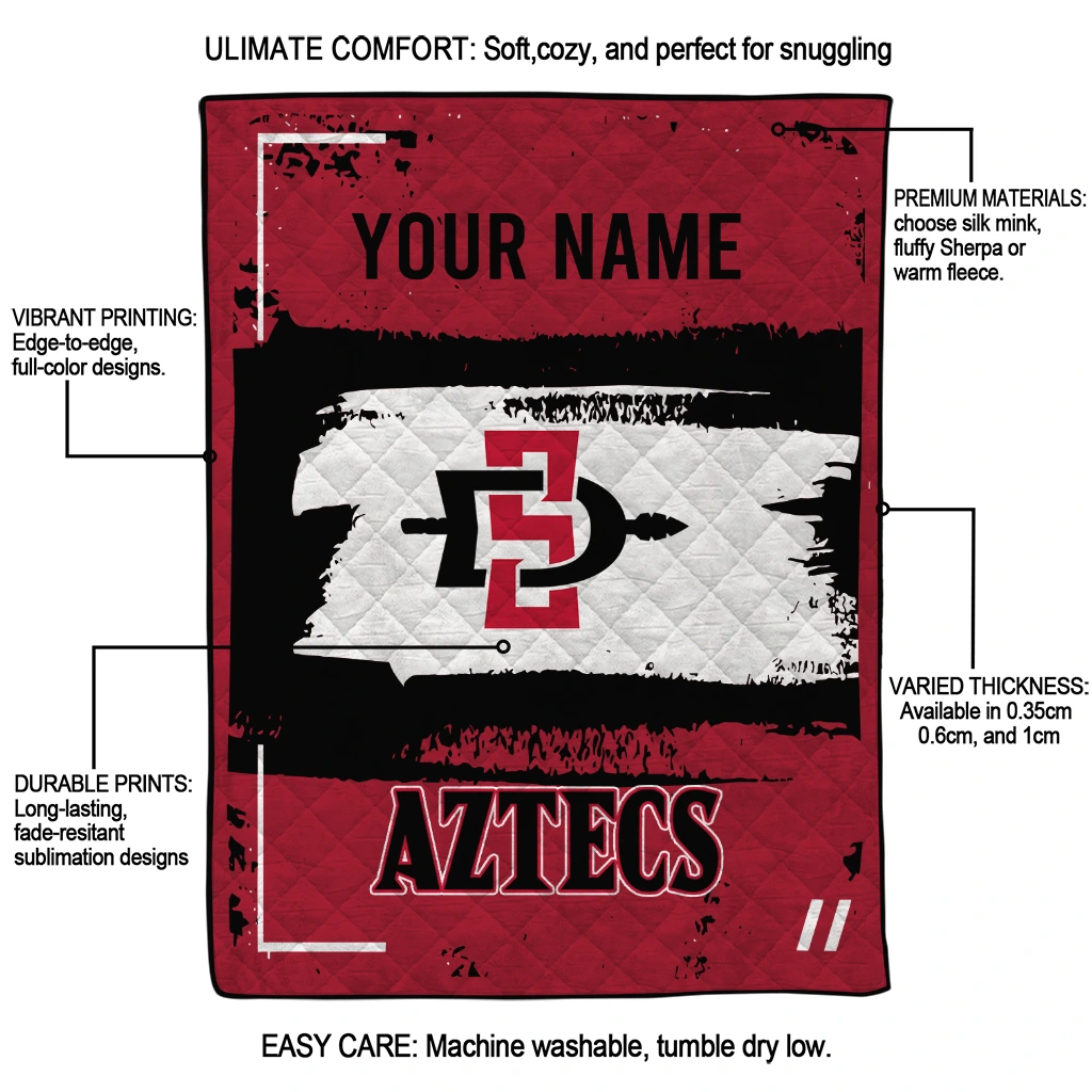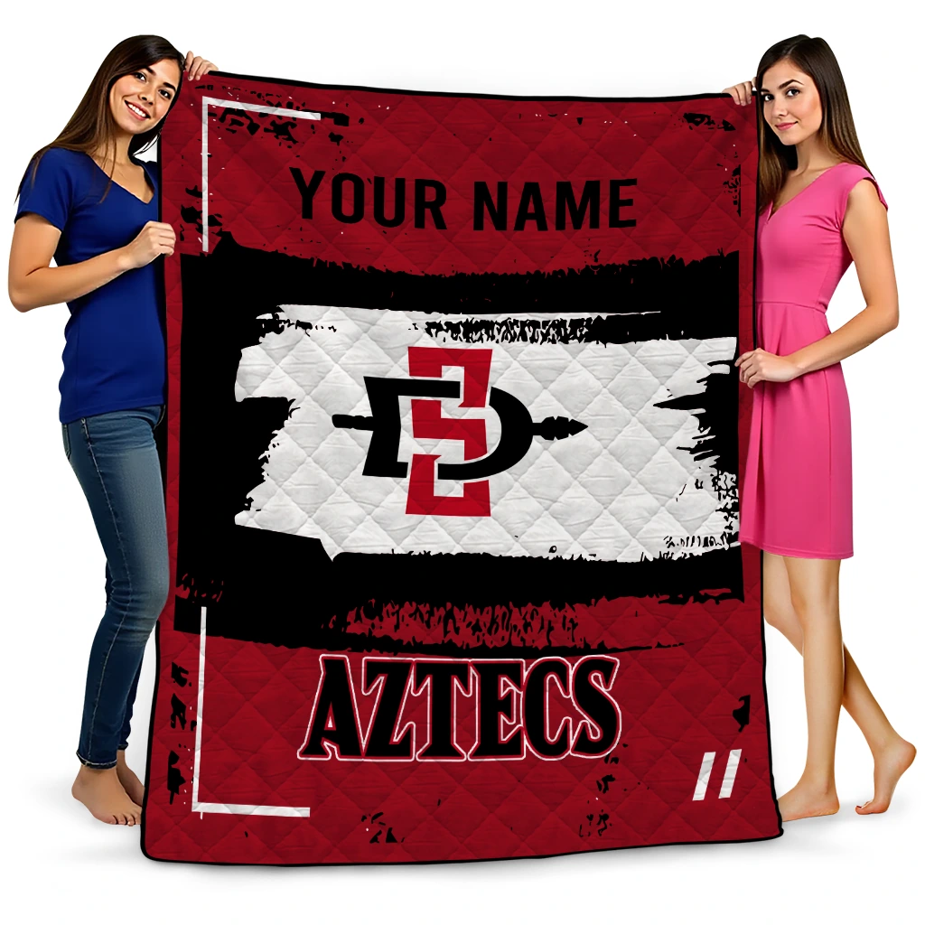 The Customized San Diego State Aztecs Grunge Patch Red White Quilt Blanket is more than a blanket—it’s everyday comfort, thoughtfully made. Crafted from premium quilting fabric with a soft microfiber touch, it offers a smooth hand-feel and lasting coziness. Layered quilting with a cotton-filled core provides adaptable warmth across seasons while maintaining a clean, tailored look on your bed or sofa.