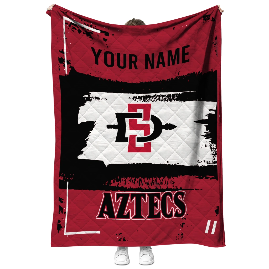 Wrap yourself in warmth and pride with the Customized San Diego State Aztecs Grunge Patch Red White Quilt Blanket from the San Diego State Aztecs Blankets collection at Yes That Blanket. Made from 100% premium quilting-weight polyester blended with a touch of microfiber, this quilt offers a smooth, soft finish you’ll love. Choose between two quilting styles—Stipple or Diagonal—and enjoy the comfort of a cotton-filled layer inside that adds extra coziness for every season. The border is available in classic black or white, giving your design a clean, timeless edge.