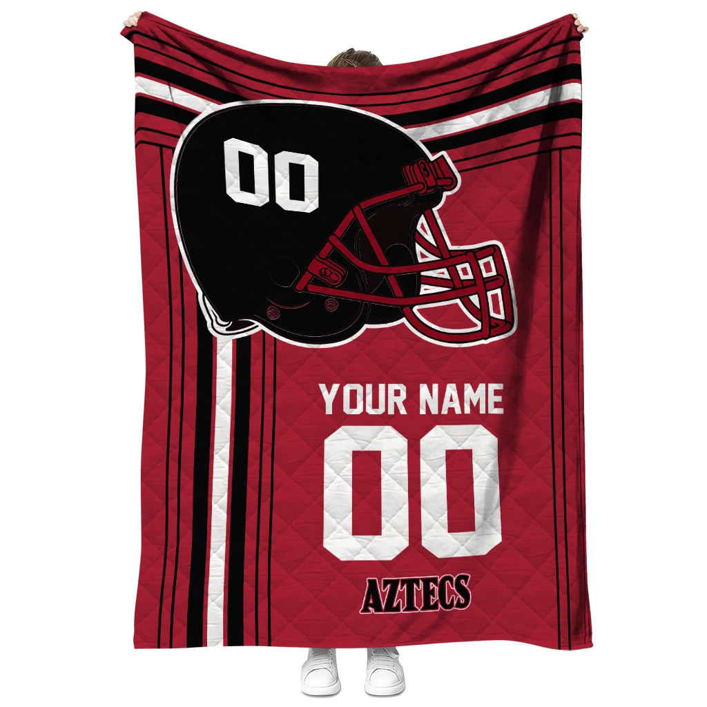 Wrap yourself in warmth and pride with the Customized San Diego State Aztecs Helmet Theme Red Quilt Blanket from the San Diego State Aztecs Blankets collection at Yes That Blanket. Made from 100% premium quilting-weight polyester blended with a touch of microfiber, this quilt offers a smooth, soft finish you’ll love. Choose between two quilting styles—Stipple or Diagonal—and enjoy the comfort of a cotton-filled layer inside that adds extra coziness for every season. The border is available in classic black or white, giving your design a clean, timeless edge.