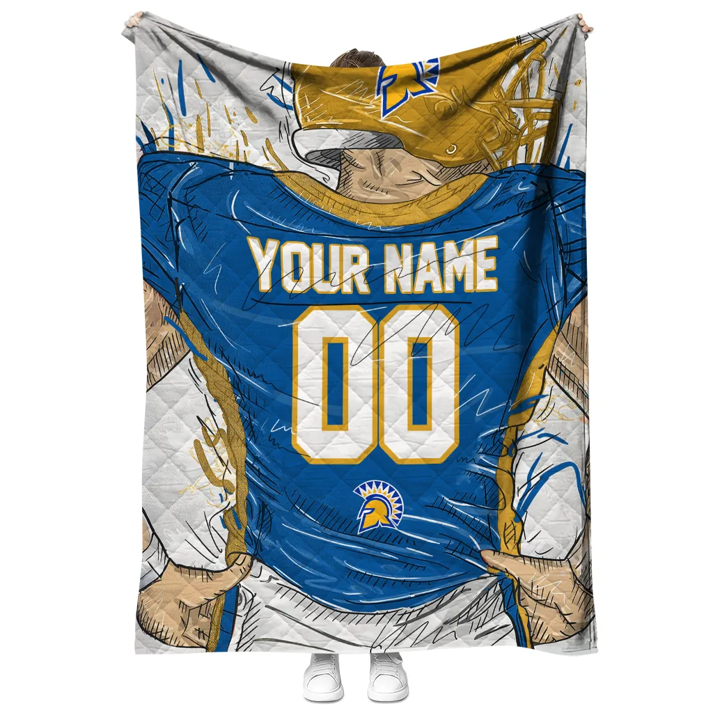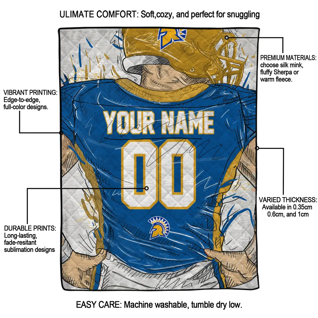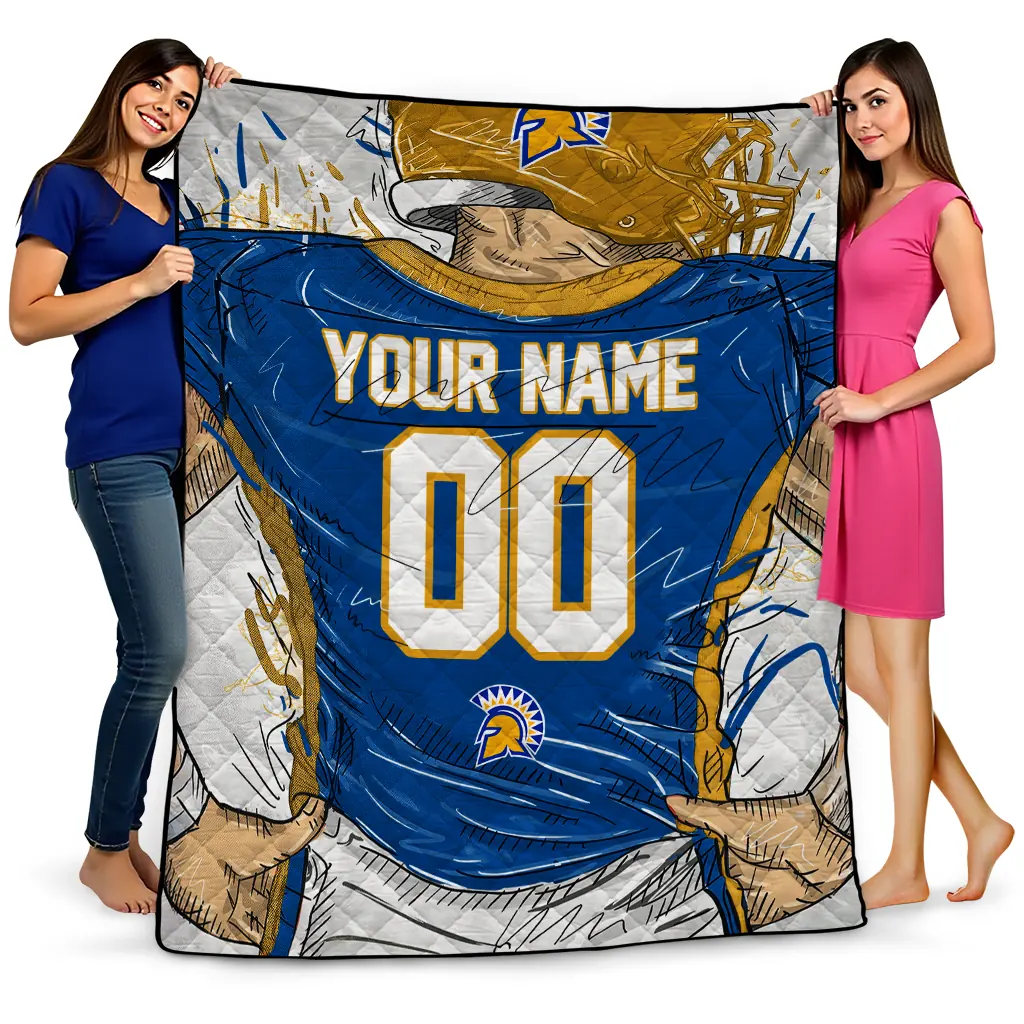 Customized San Jose State Spartans Player Sketch Blue Gray Quilt Blanket