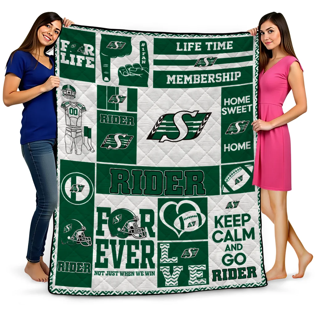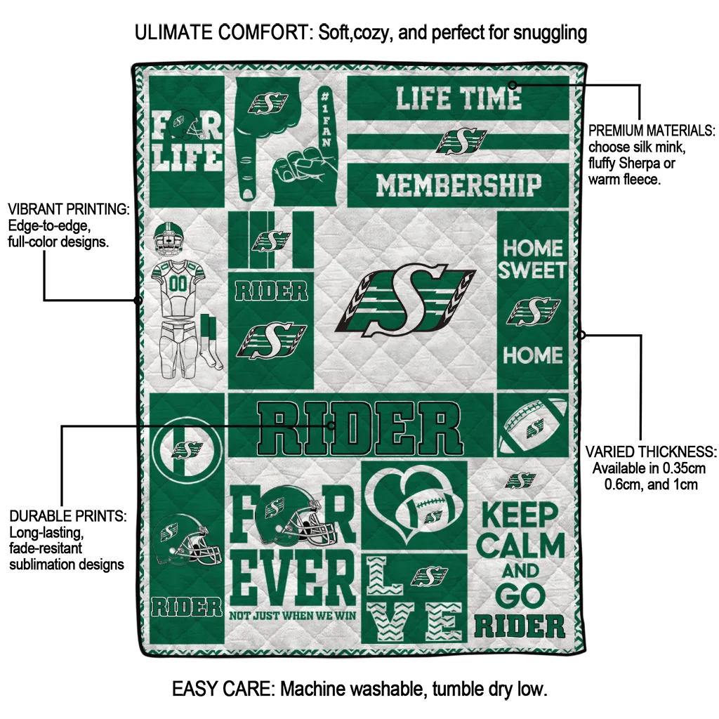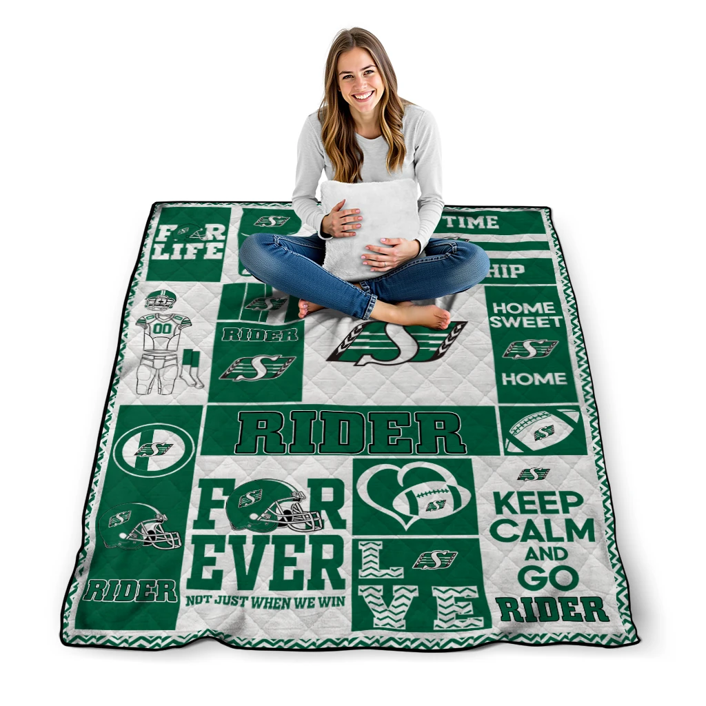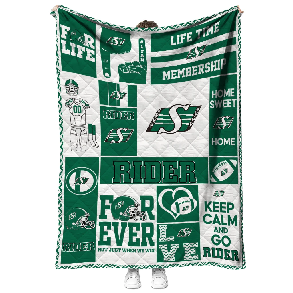 Customized Saskatchewan Roughriders Helmet Passion Green Quilt Blanket
