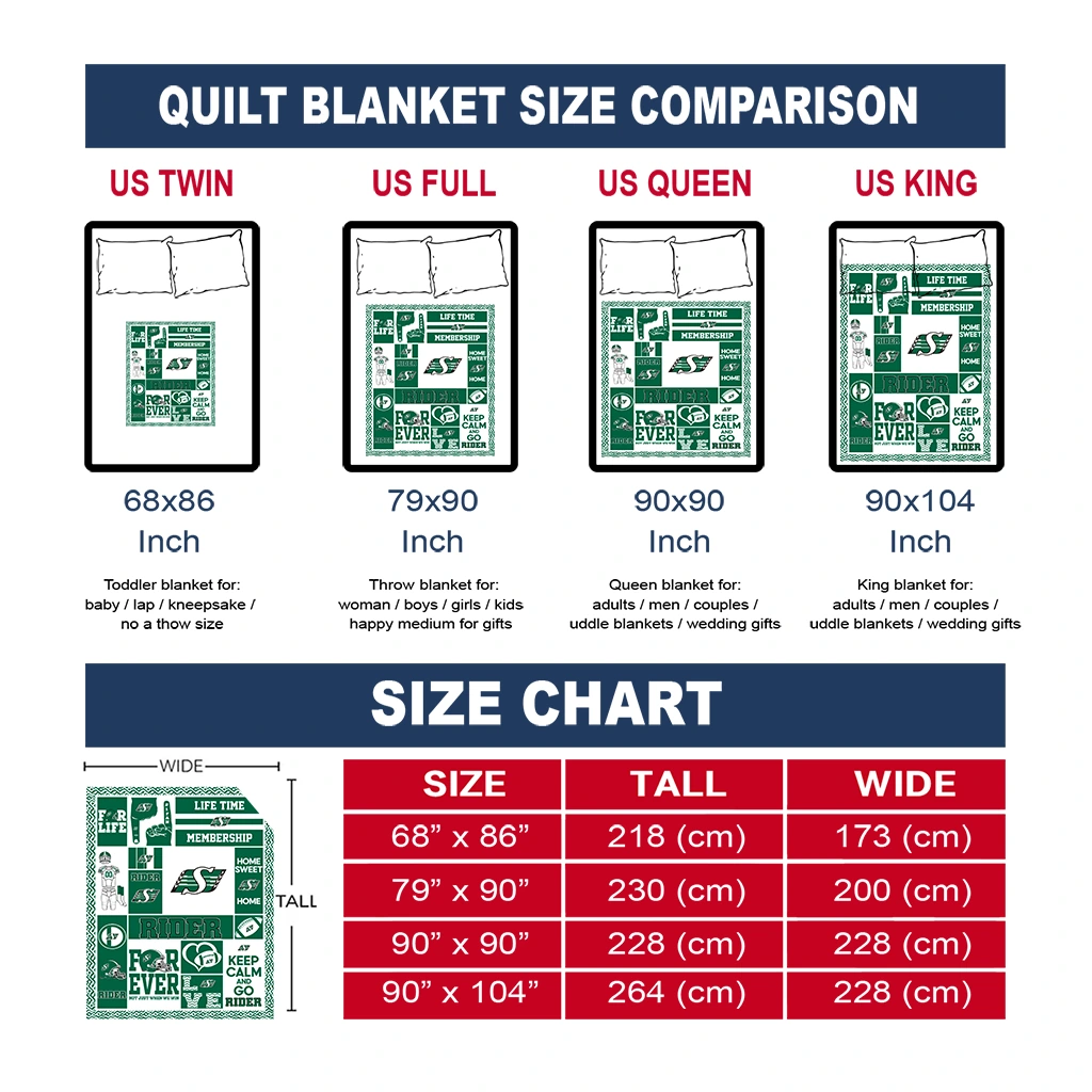 The Customized Saskatchewan Roughriders Helmet Passion Green Quilt Blanket is more than a blanket—it’s everyday comfort, thoughtfully made. Crafted from premium quilting fabric with a soft microfiber touch, it offers a smooth hand-feel and lasting coziness. Layered quilting with a cotton-filled core provides adaptable warmth across seasons while maintaining a clean, tailored look on your bed or sofa.