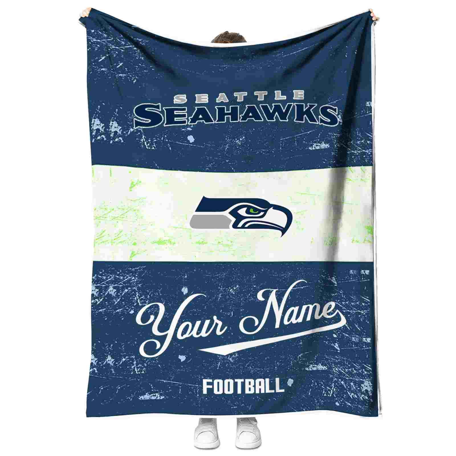 Without a doubt, the Customized Seattle Seahawks Grunge Texture Blue White Blanket from Seattle Seahawks Blankets collection is offering true fans a chance to showcase passion in a cool way. Personalize it with your favorite team’s logo or a meaningful name to make it uniquely yours. Isn’t that great? The full-color print ensures vibrant, edge-to-edge designs, bringing your sports enthusiasm to life!