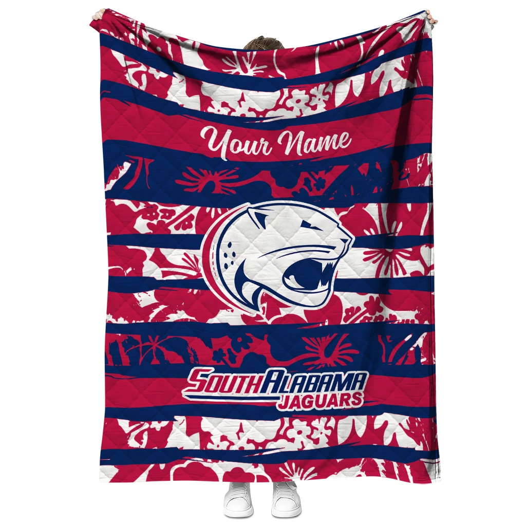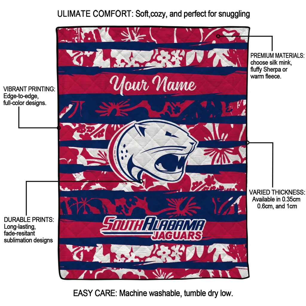 The Customized South Alabama Jaguars Layered Florals Blue White Quilt Blanket is more than a blanket—it’s everyday comfort, thoughtfully made. Crafted from premium quilting fabric with a soft microfiber touch, it offers a smooth hand-feel and lasting coziness. Layered quilting with a cotton-filled core provides adaptable warmth across seasons while maintaining a clean, tailored look on your bed or sofa.