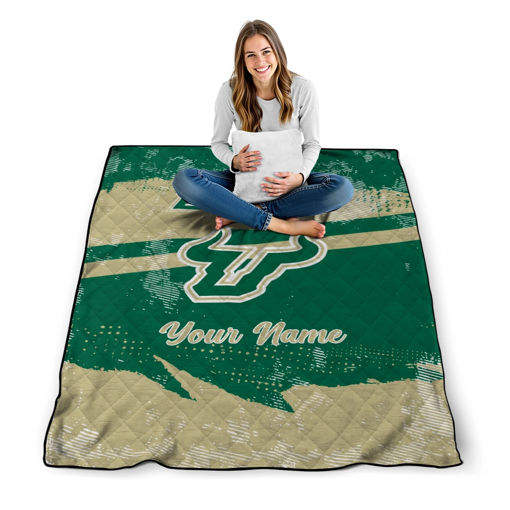 Customized South Florida Bulls Brushstroke Layers Green Quilt Blanket