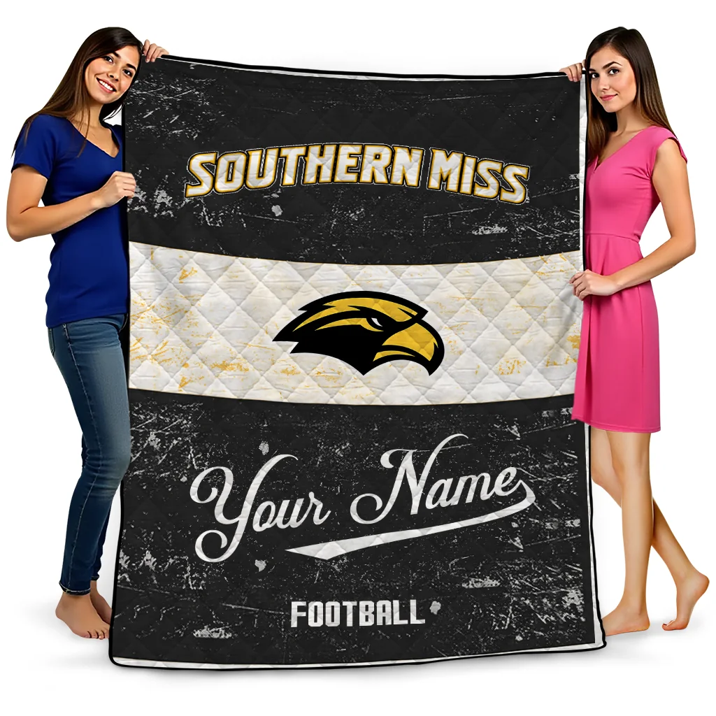 The Customized Southern Miss Golden Eagles Hibiscus Burst Black White Quilt Blanket is more than a blanket—it’s everyday comfort, thoughtfully made. Crafted from premium quilting fabric with a soft microfiber touch, it offers a smooth hand-feel and lasting coziness. Layered quilting with a cotton-filled core provides adaptable warmth across seasons while maintaining a clean, tailored look on your bed or sofa.