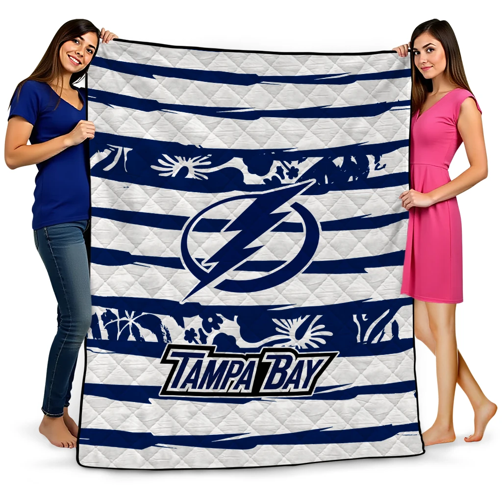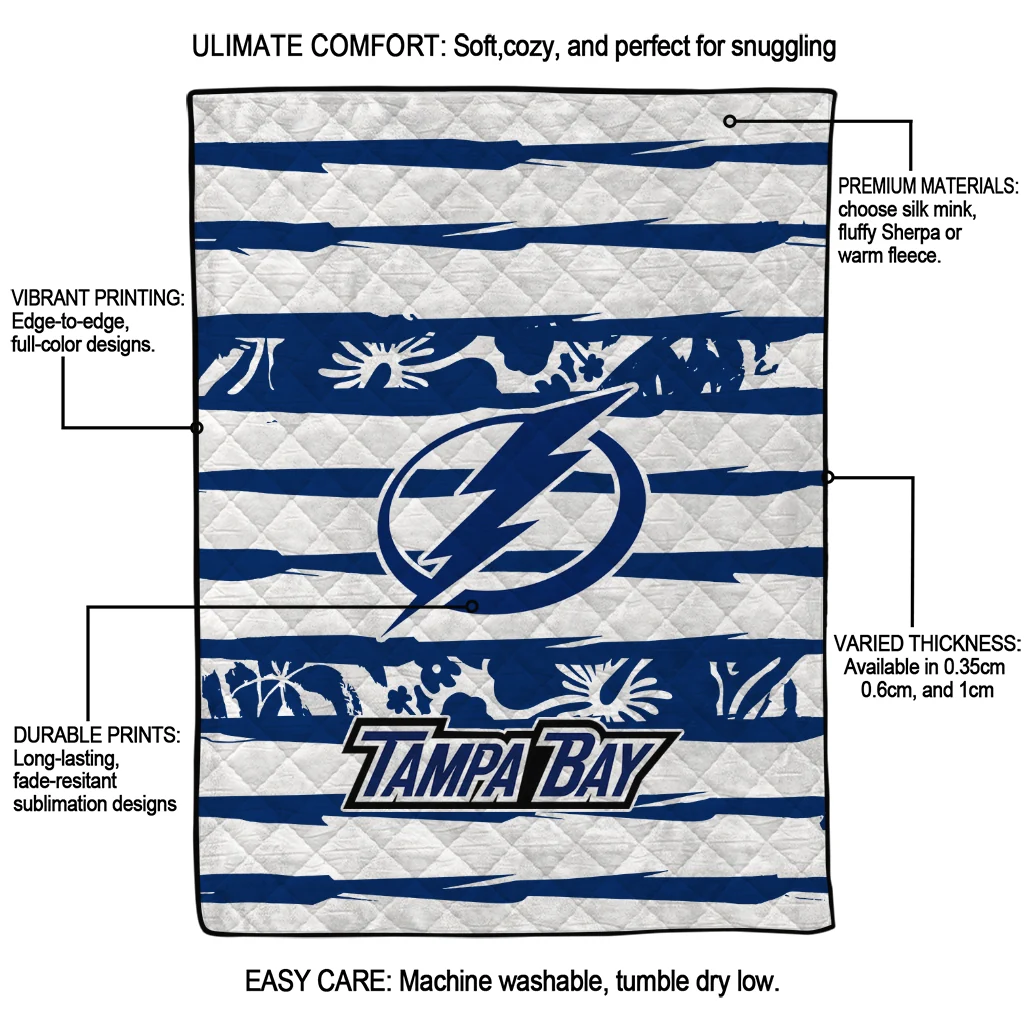 Customized Tampa Bay Lightning Layered Florals Blue White Quilt Blanket