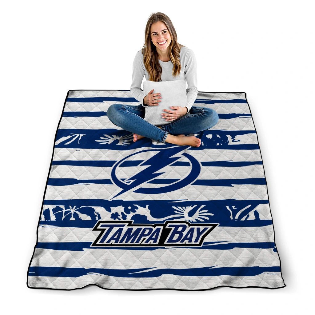 Wrap yourself in warmth and pride with the Customized Tampa Bay Lightning Layered Florals Blue White Quilt Blanket from the Tampa Bay Lightning Blankets collection at Yes That Blanket. Made from 100% premium quilting-weight polyester blended with a touch of microfiber, this quilt offers a smooth, soft finish you’ll love. Choose between two quilting styles—Stipple or Diagonal—and enjoy the comfort of a cotton-filled layer inside that adds extra coziness for every season. The border is available in classic black or white, giving your design a clean, timeless edge.
