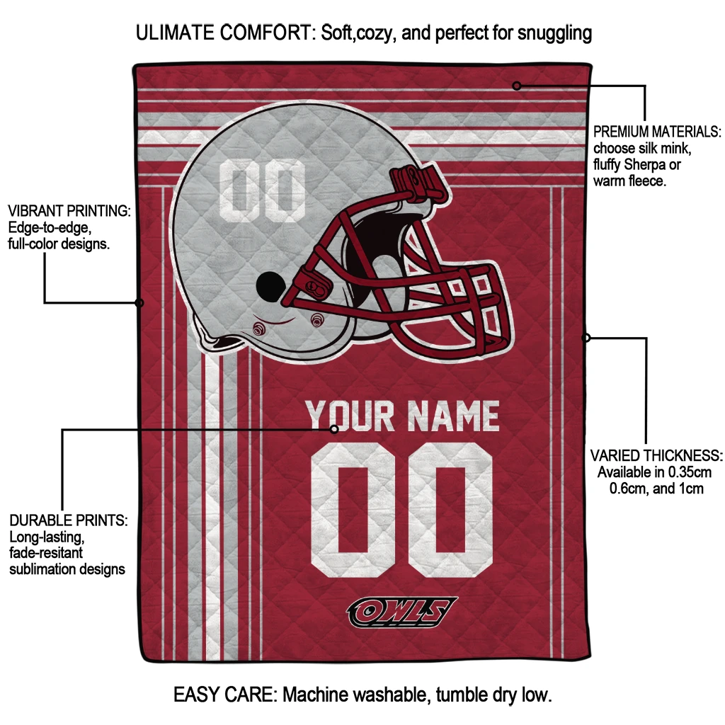 Wrap yourself in warmth and pride with the Customized Temple Owls Helmet Theme Red Quilt Blanket from the Temple Owls Blankets collection at Yes That Blanket. Made from 100% premium quilting-weight polyester blended with a touch of microfiber, this quilt offers a smooth, soft finish you’ll love. Choose between two quilting styles—Stipple or Diagonal—and enjoy the comfort of a cotton-filled layer inside that adds extra coziness for every season. The border is available in classic black or white, giving your design a clean, timeless edge.