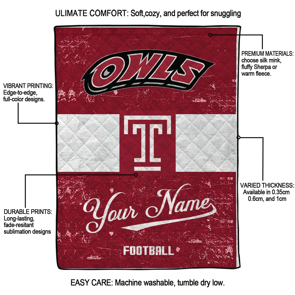 Wrap yourself in warmth and pride with the Customized Temple Owls Hibiscus Burst Red White Quilt Blanket from the Temple Owls Blankets collection at Yes That Blanket. Made from 100% premium quilting-weight polyester blended with a touch of microfiber, this quilt offers a smooth, soft finish you’ll love. Choose between two quilting styles—Stipple or Diagonal—and enjoy the comfort of a cotton-filled layer inside that adds extra coziness for every season. The border is available in classic black or white, giving your design a clean, timeless edge.