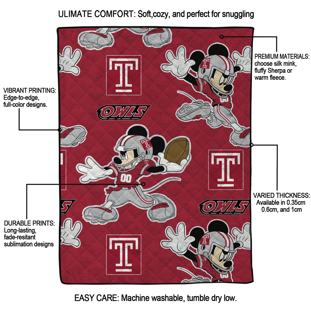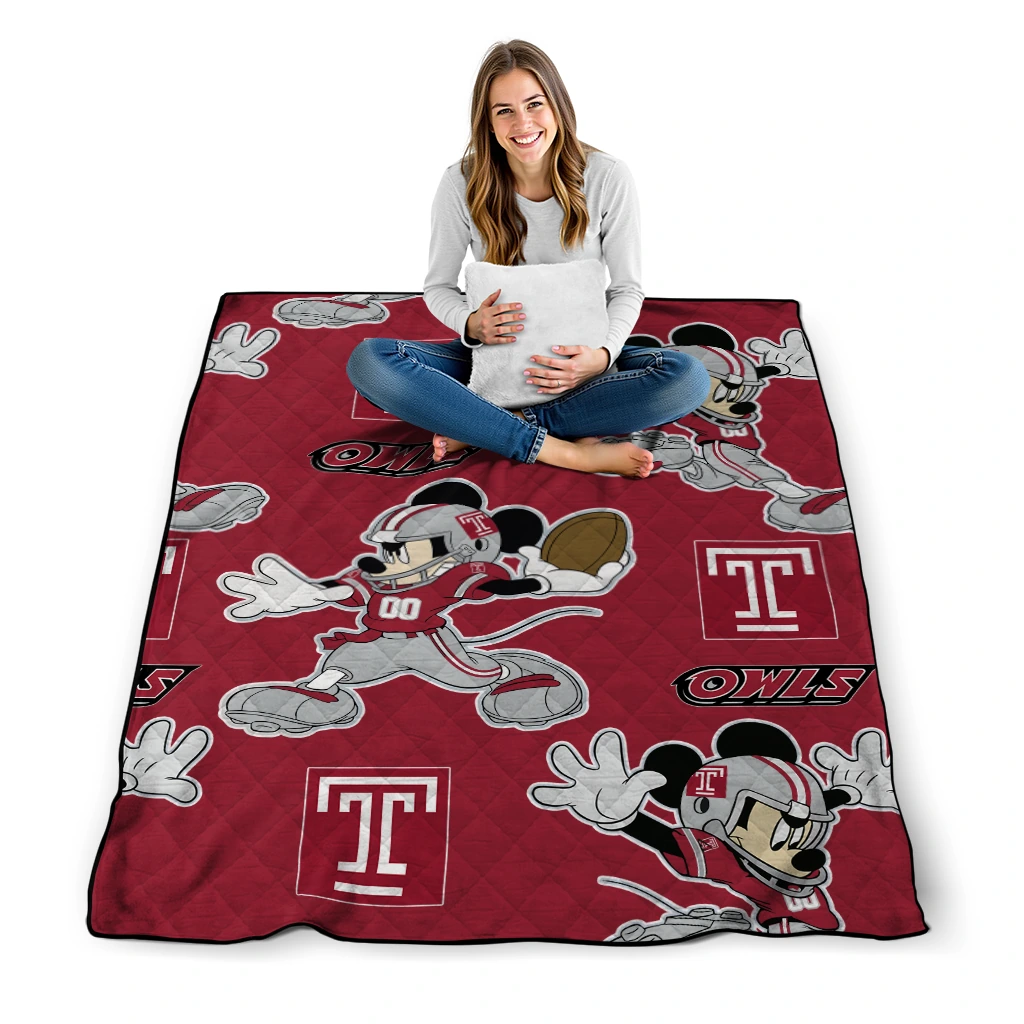 The Customized Temple Owls Mickey Football Red Quilt Blanket is more than a blanket—it’s everyday comfort, thoughtfully made. Crafted from premium quilting fabric with a soft microfiber touch, it offers a smooth hand-feel and lasting coziness. Layered quilting with a cotton-filled core provides adaptable warmth across seasons while maintaining a clean, tailored look on your bed or sofa.