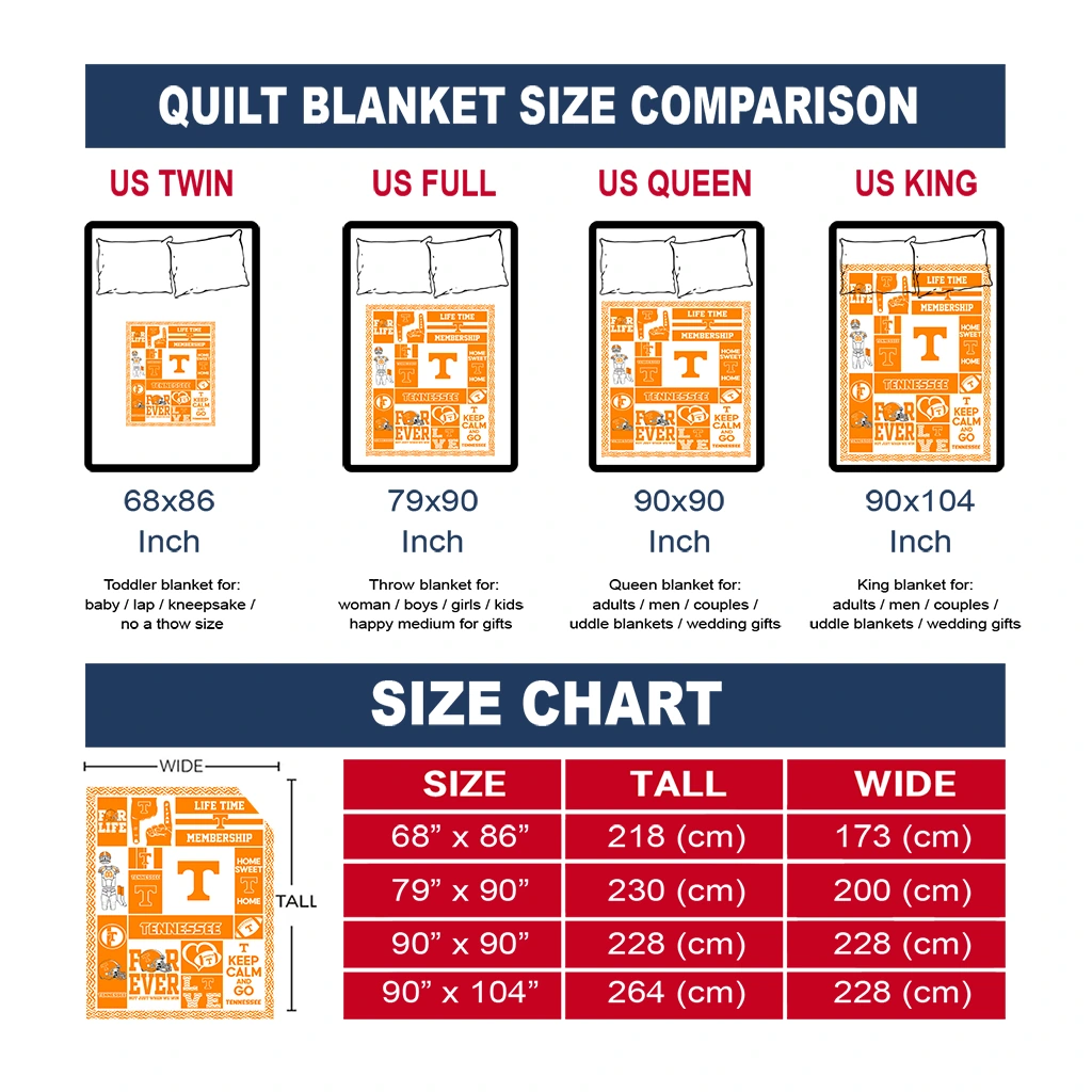 The Customized Tennessee Volunteers Helmet Passion Orange Quilt Blanket is more than a blanket—it’s everyday comfort, thoughtfully made. Crafted from premium quilting fabric with a soft microfiber touch, it offers a smooth hand-feel and lasting coziness. Layered quilting with a cotton-filled core provides adaptable warmth across seasons while maintaining a clean, tailored look on your bed or sofa.