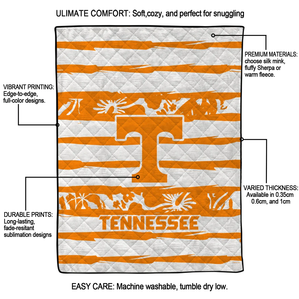 Wrap yourself in warmth and pride with the Customized Tennessee Volunteers Layered Florals Orange White Quilt Blanket from the Tennessee Volunteers Blankets collection at Yes That Blanket. Made from 100% premium quilting-weight polyester blended with a touch of microfiber, this quilt offers a smooth, soft finish you’ll love. Choose between two quilting styles—Stipple or Diagonal—and enjoy the comfort of a cotton-filled layer inside that adds extra coziness for every season. The border is available in classic black or white, giving your design a clean, timeless edge.