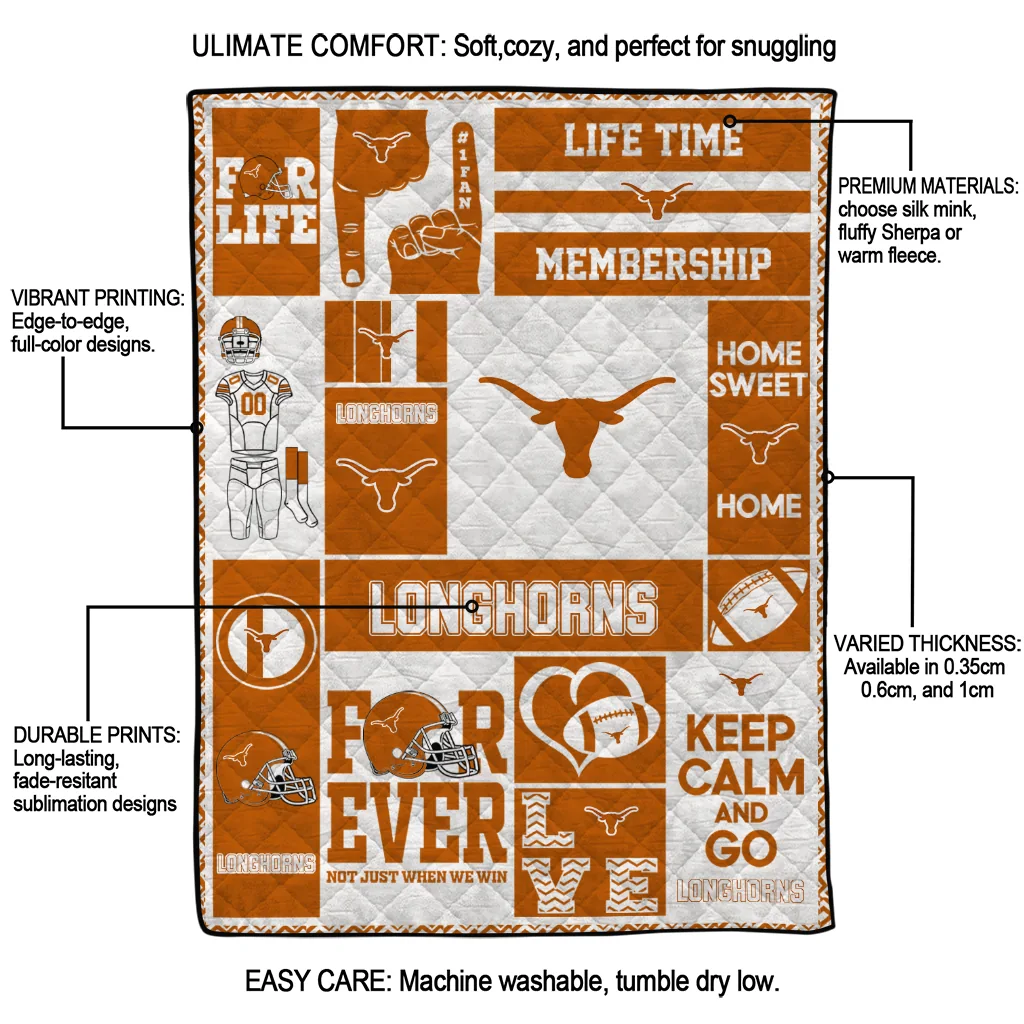 The Customized Texas Longhorns Helmet Passion Orange Quilt Blanket is more than a blanket—it’s everyday comfort, thoughtfully made. Crafted from premium quilting fabric with a soft microfiber touch, it offers a smooth hand-feel and lasting coziness. Layered quilting with a cotton-filled core provides adaptable warmth across seasons while maintaining a clean, tailored look on your bed or sofa.