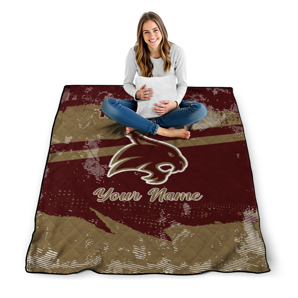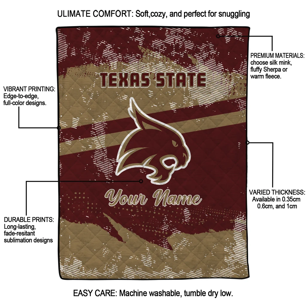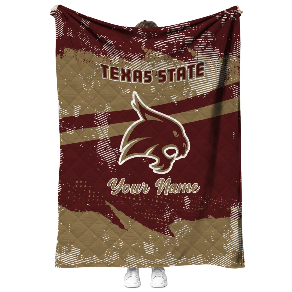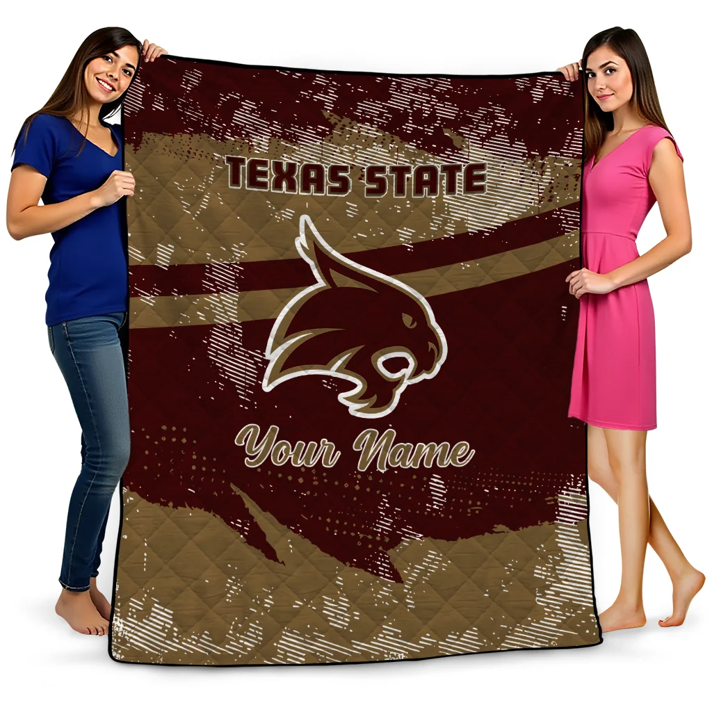 Customized Texas State Bobcats Brushstroke Layers Maroon Quilt Blanket