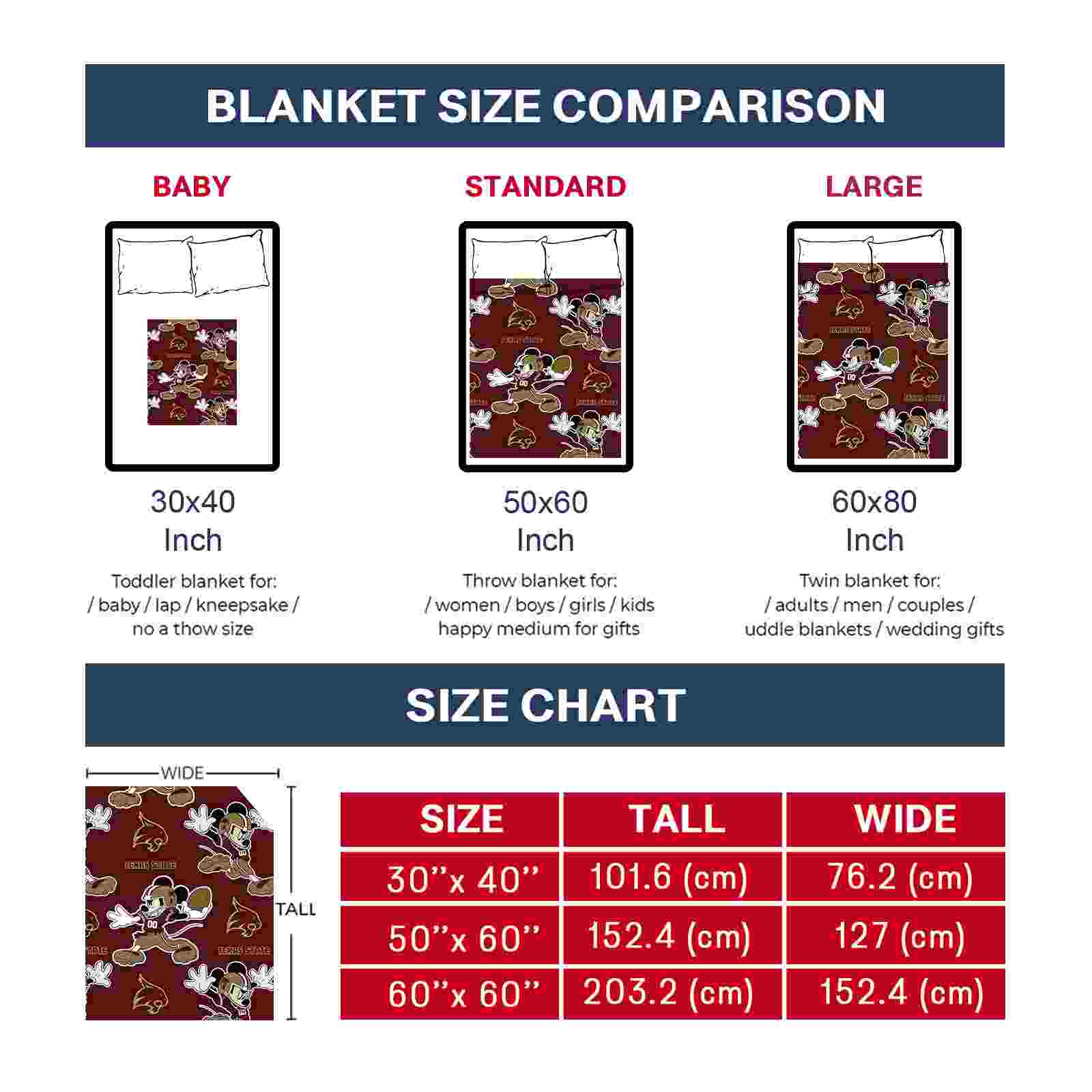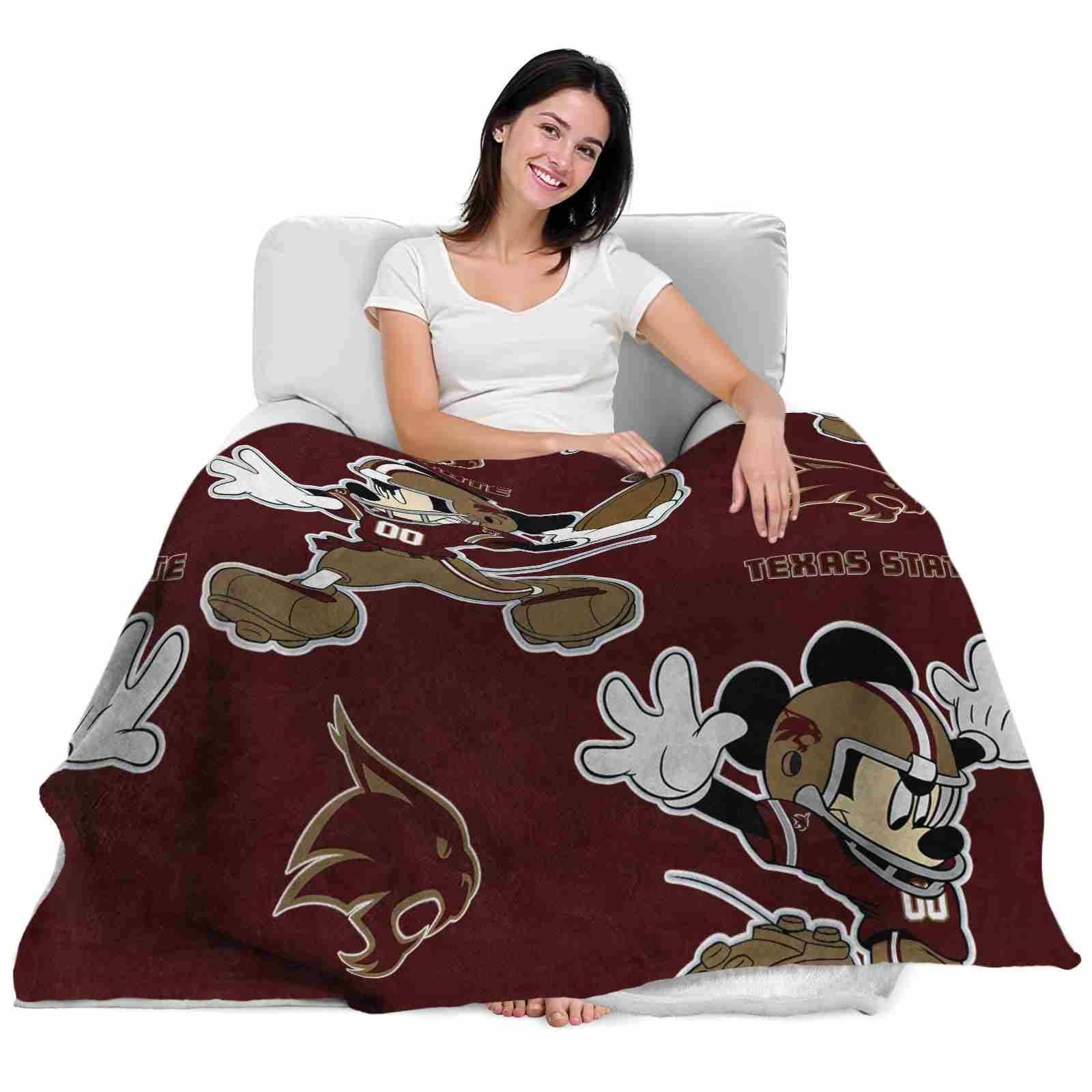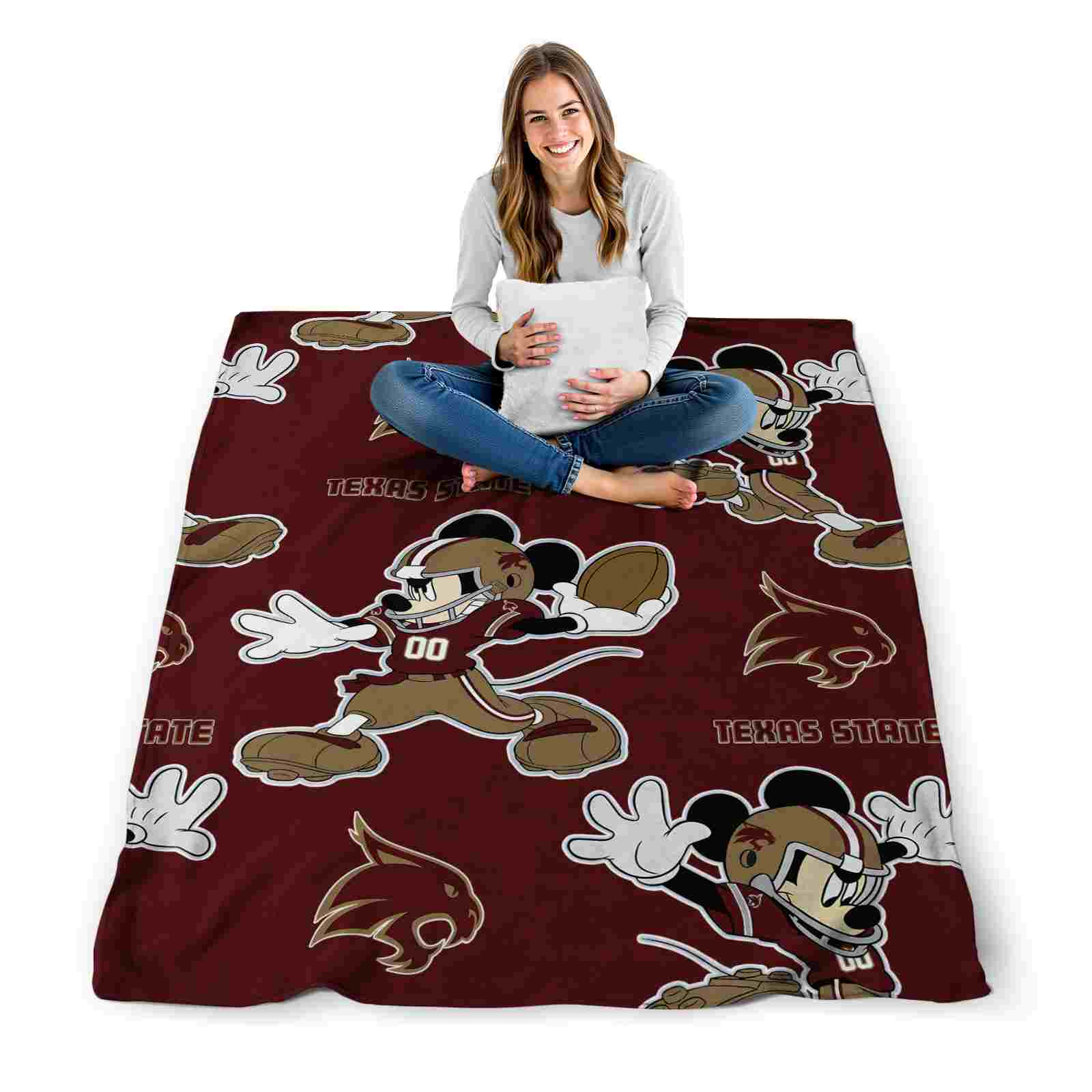 Without a doubt, the Customized Texas State Bobcats Mickey Maroon Blanket from Texas State Bobcats Blankets collection is offering true fans a chance to showcase passion in a cool way. Personalize it with your favorite team's logo or a meaningful name to make it uniquely yours. Isn't that great? The full-color print ensures vibrant, edge-to-edge designs, bringing your sports enthusiasm to life!