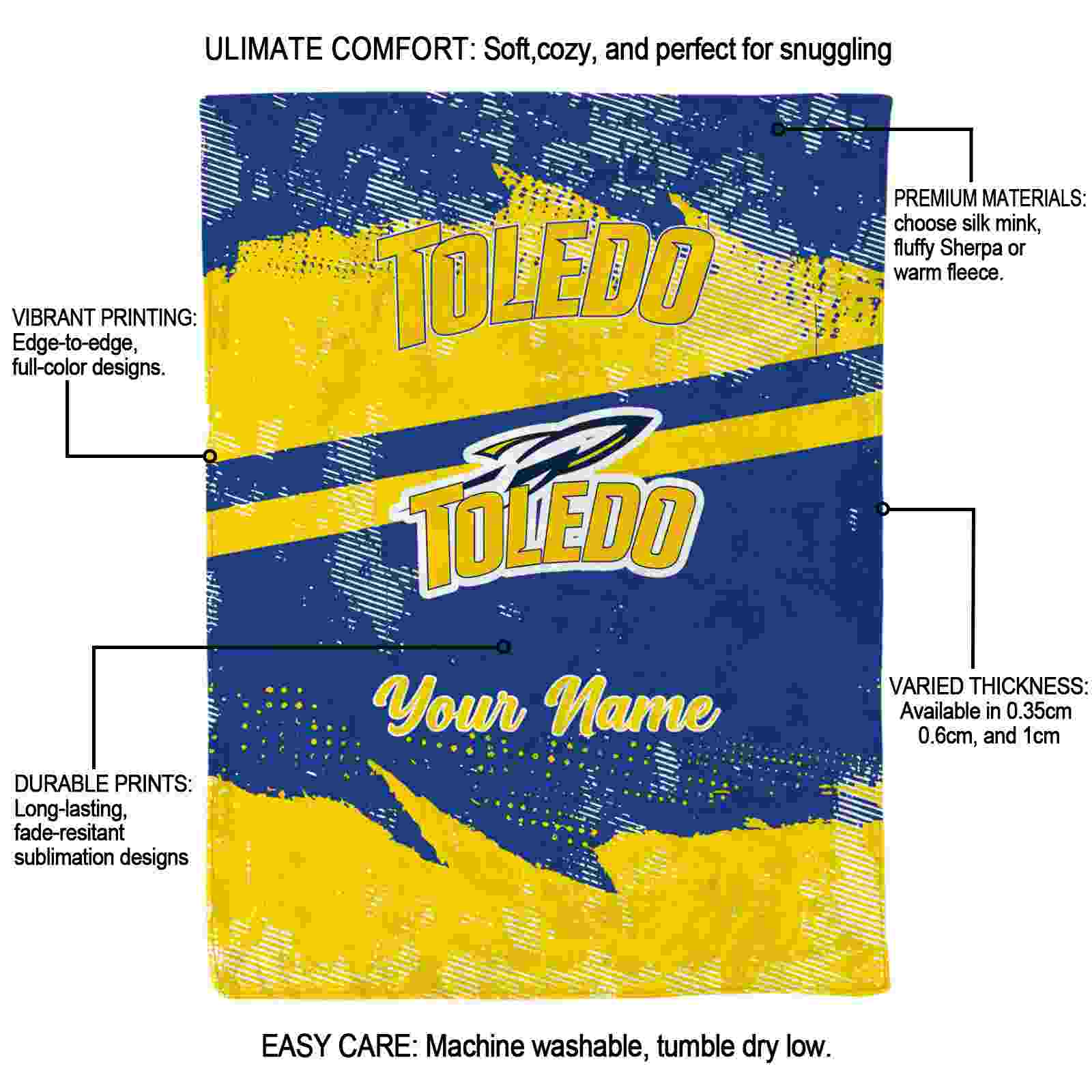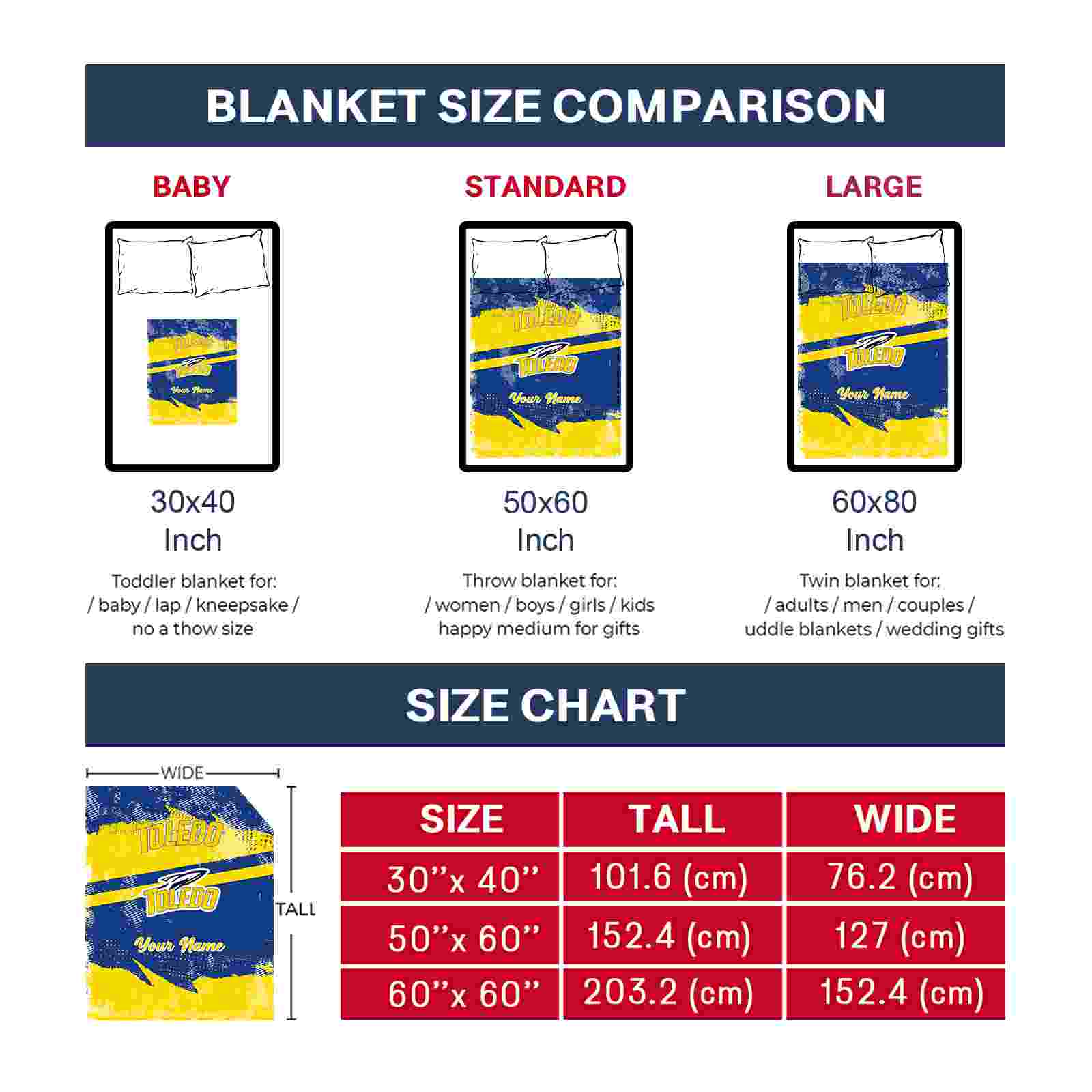 Without a doubt, the Customized Toledo Rockets Grunge Streaks Blue Blanket from Toledo Rockets Blankets collection is offering true fans a chance to showcase passion in a cool way. Personalize it with your favorite team’s logo or a meaningful name to make it uniquely yours. Isn’t that great? The full-color print ensures vibrant, edge-to-edge designs, bringing your sports enthusiasm to life!