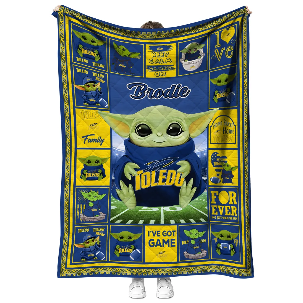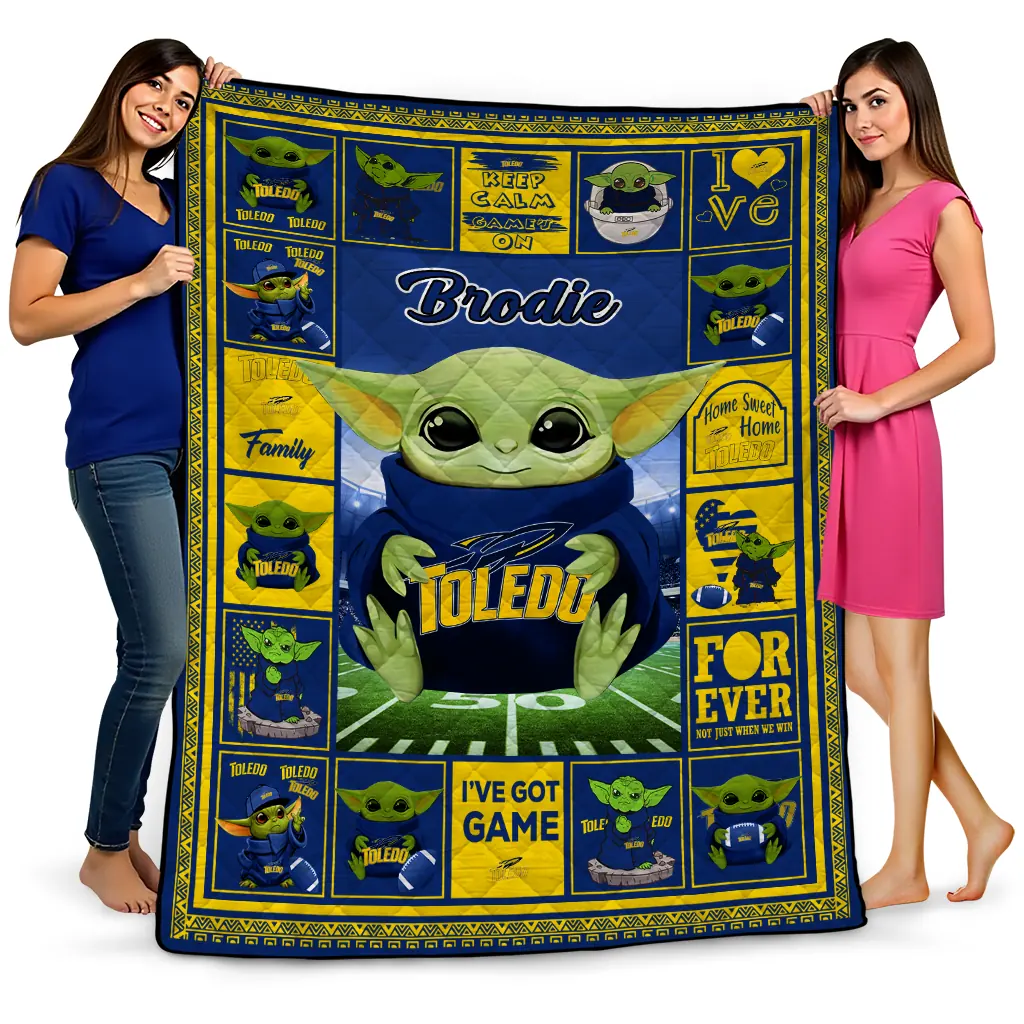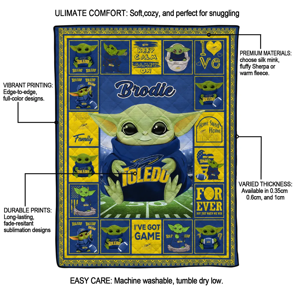 Wrap yourself in warmth and pride with the Customized Toledo Rockets Yody Baby Pattern Blue Quilt Blanket from the Toledo Rockets Blankets collection at Yes That Blanket. Made from 100% premium quilting-weight polyester blended with a touch of microfiber, this quilt offers a smooth, soft finish you’ll love. Choose between two quilting styles—Stipple or Diagonal—and enjoy the comfort of a cotton-filled layer inside that adds extra coziness for every season. The border is available in classic black or white, giving your design a clean, timeless edge.