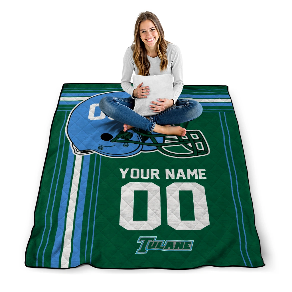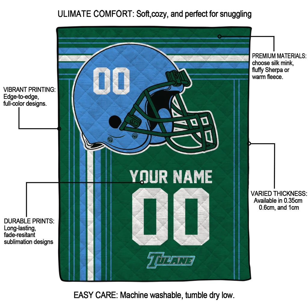 The Customized Tulane Green Wave Helmet Theme Green Quilt Blanket is more than a blanket—it’s everyday comfort, thoughtfully made. Crafted from premium quilting fabric with a soft microfiber touch, it offers a smooth hand-feel and lasting coziness. Layered quilting with a cotton-filled core provides adaptable warmth across seasons while maintaining a clean, tailored look on your bed or sofa.