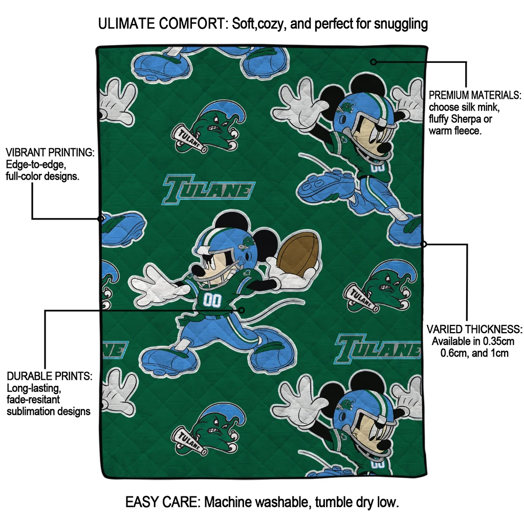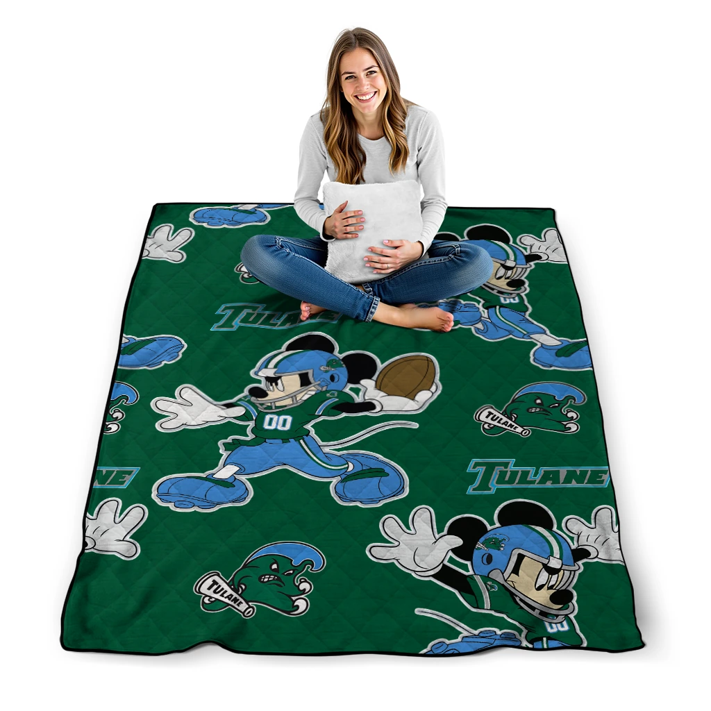 Customized Tulane Green Wave Mickey Football Green Quilt Blanket