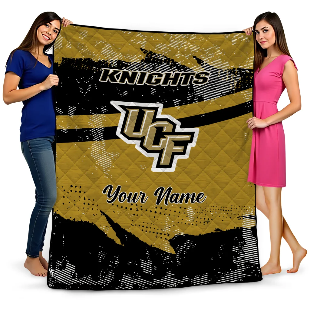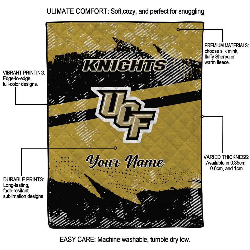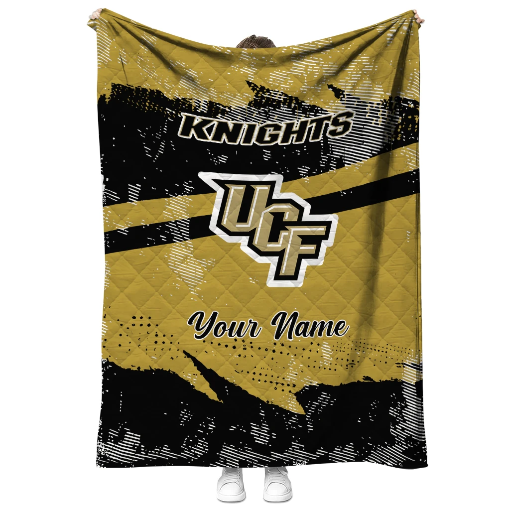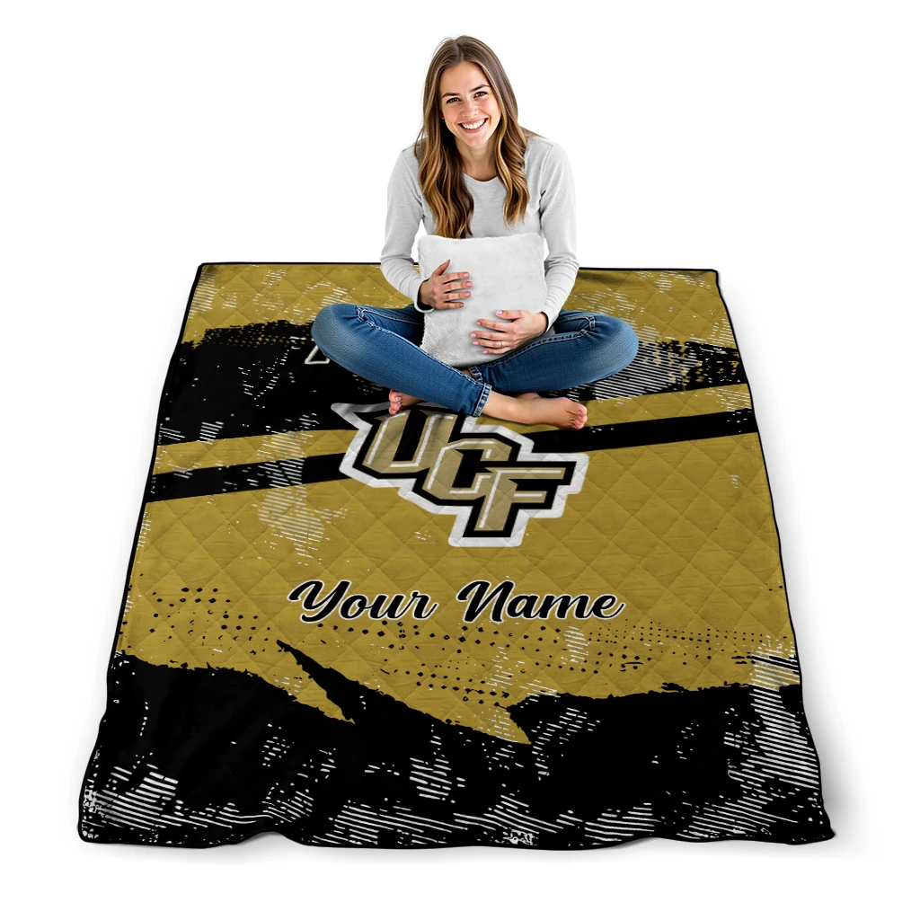 Wrap yourself in warmth and pride with the Customized UCF Knights Brushstroke Layers Gold Quilt Blanket from the UCF Knights Blankets collection at Yes That Blanket. Made from 100% premium quilting-weight polyester blended with a touch of microfiber, this quilt offers a smooth, soft finish you’ll love. Choose between two quilting styles—Stipple or Diagonal—and enjoy the comfort of a cotton-filled layer inside that adds extra coziness for every season. The border is available in classic black or white, giving your design a clean, timeless edge.