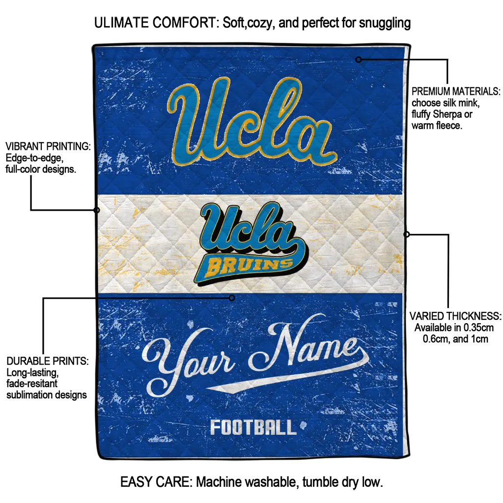 The Customized UCLA Bruins Hibiscus Burst Blue White Quilt Blanket is more than a blanket—it’s everyday comfort, thoughtfully made. Crafted from premium quilting fabric with a soft microfiber touch, it offers a smooth hand-feel and lasting coziness. Layered quilting with a cotton-filled core provides adaptable warmth across seasons while maintaining a clean, tailored look on your bed or sofa.