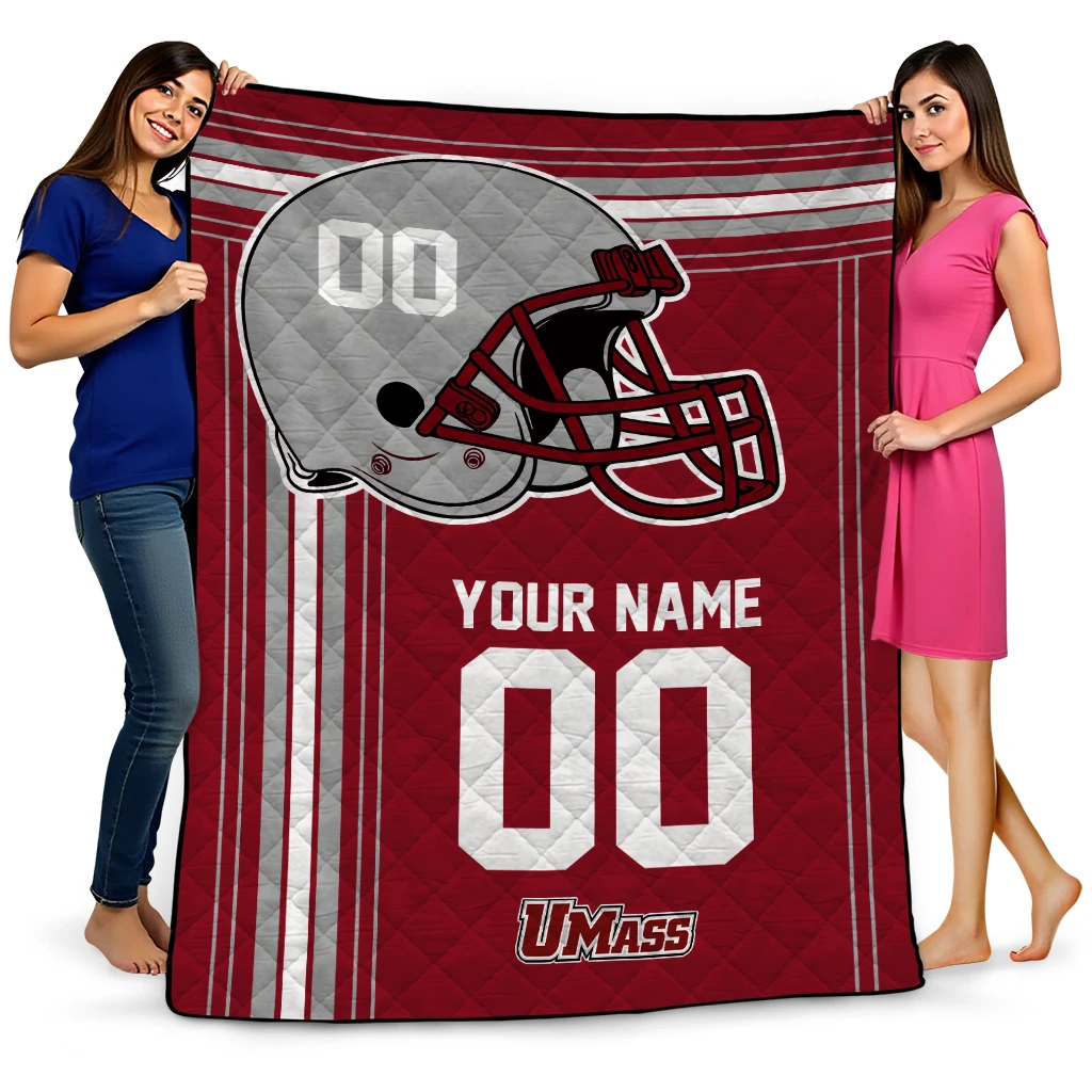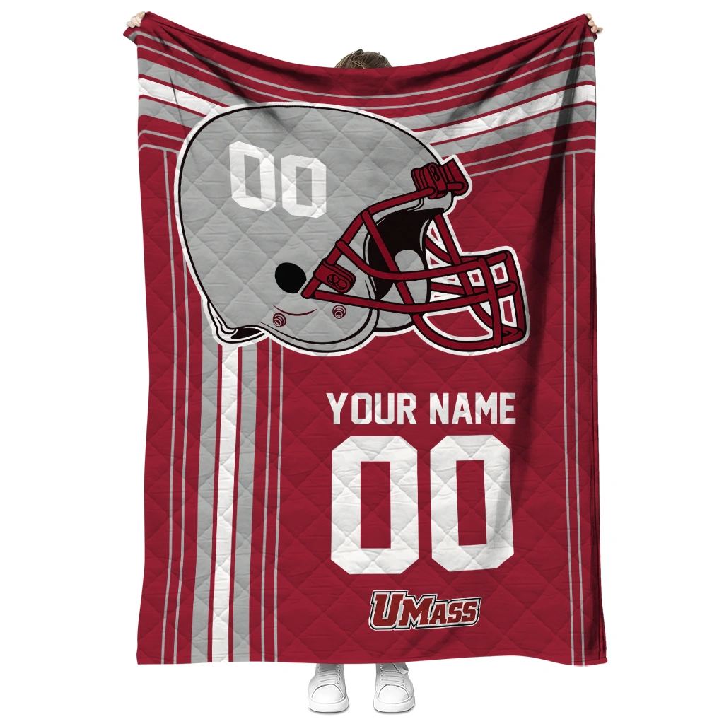 Customized UMass Minutemen Helmet Theme Red Quilt Blanket