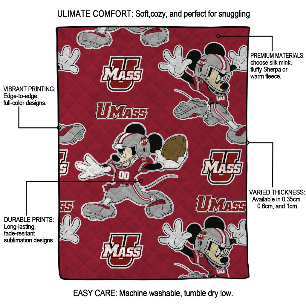 The Customized UMass Minutemen Mickey Football Red Quilt Blanket is more than a blanket—it’s everyday comfort, thoughtfully made. Crafted from premium quilting fabric with a soft microfiber touch, it offers a smooth hand-feel and lasting coziness. Layered quilting with a cotton-filled core provides adaptable warmth across seasons while maintaining a clean, tailored look on your bed or sofa.